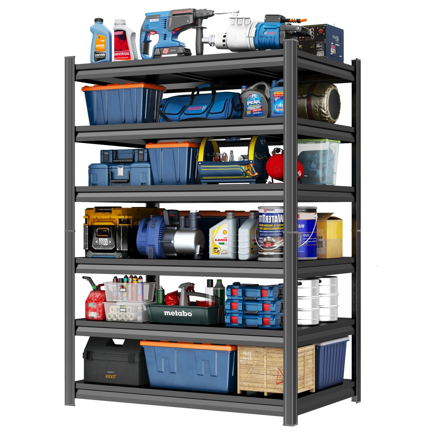 Garage Shelving 3000LBS Metal Storage Shelves Adjustable 6-Tier Shelving Units Garage Storage Shelves Heavy Duty for Basement, Commercial, Warehouse, Industrial, Black