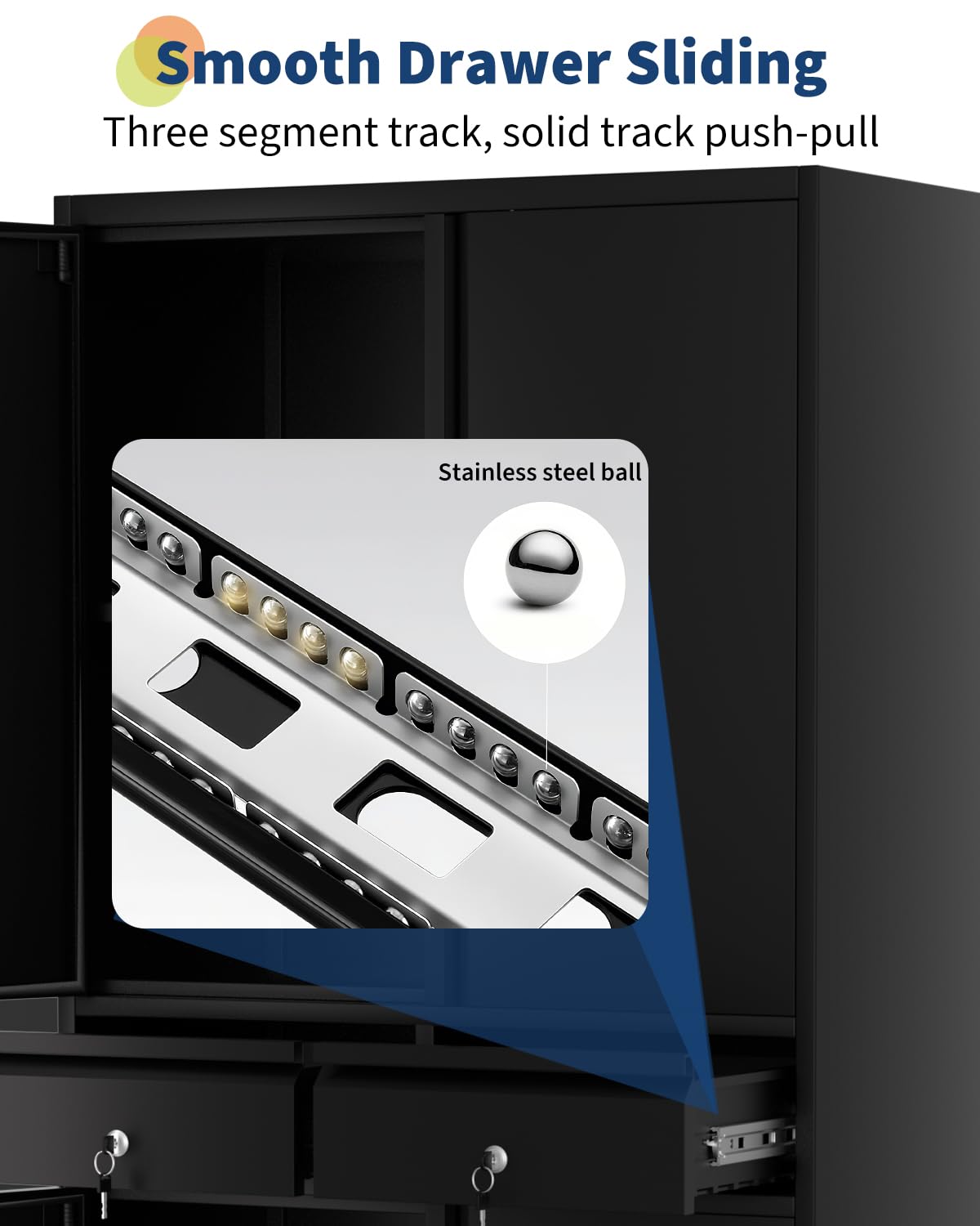 - Spacious & Versatile Storage: Featuring 2 doors, 2 roomy drawers, and 3 adjustable shelves, this large metal tool cabinet provides flexible storage for garage tools, office files, and more. Keep your items organized and protected from dust and damage