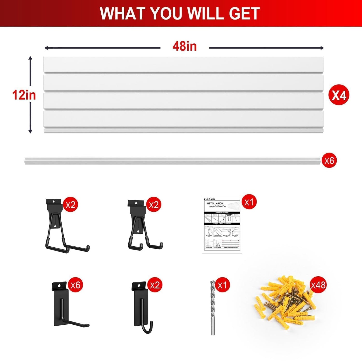 Ginchain Garage Slatwall Panel Wall Organizer - Slat Wall Paneling Sheets with Hooks, Interlocking PVC Panels for Tool Organization Mounted Storage Systems