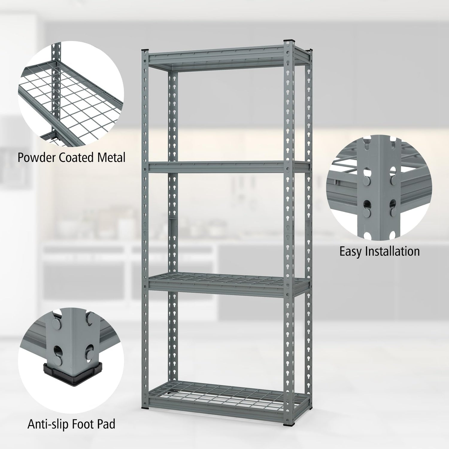 Goplus 4-Tier Metal Shelving Unit, 2 Pack Heavy Duty Wire Storage Rack with Anti-Slip Foot Pads, Height Adjustable Shelves for Warehouse, Kitchen, Living Room, Garage, 12" D x 27.5" W x 60" H
