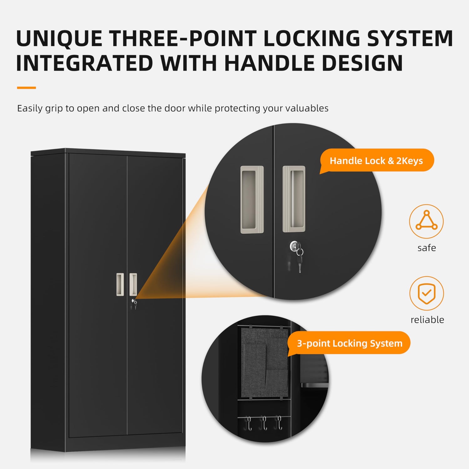 - [Locking System Design]::Greenvelly metal storage tool cabinet with the retraction handle and lock block on the side cabinet door, the overall create a modern style.Besides, we provide 2 keys, the lock block is designed to effectively protect your various valuable documents and belongings.
