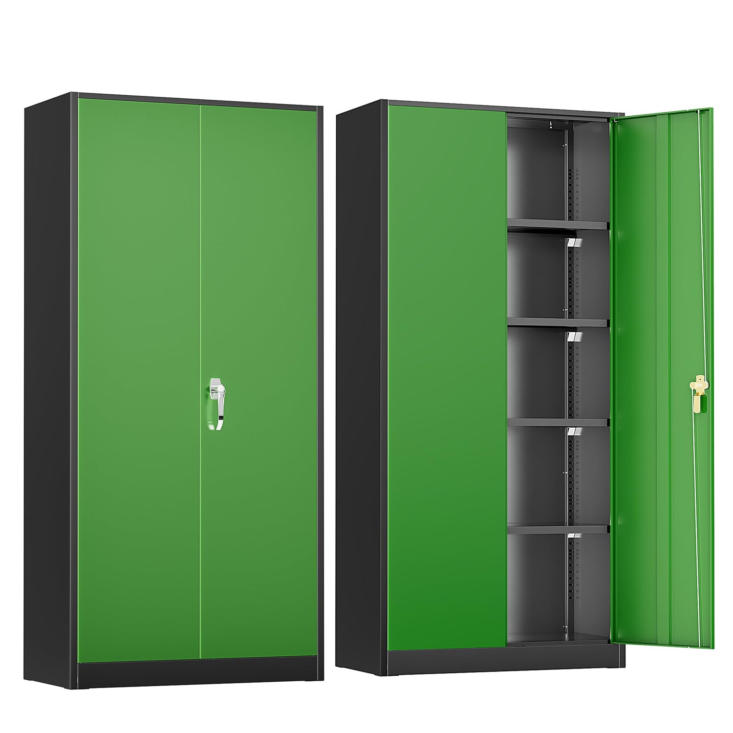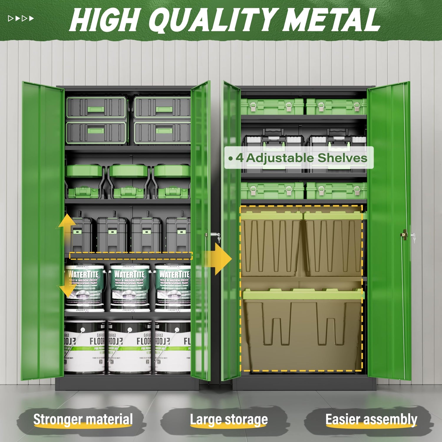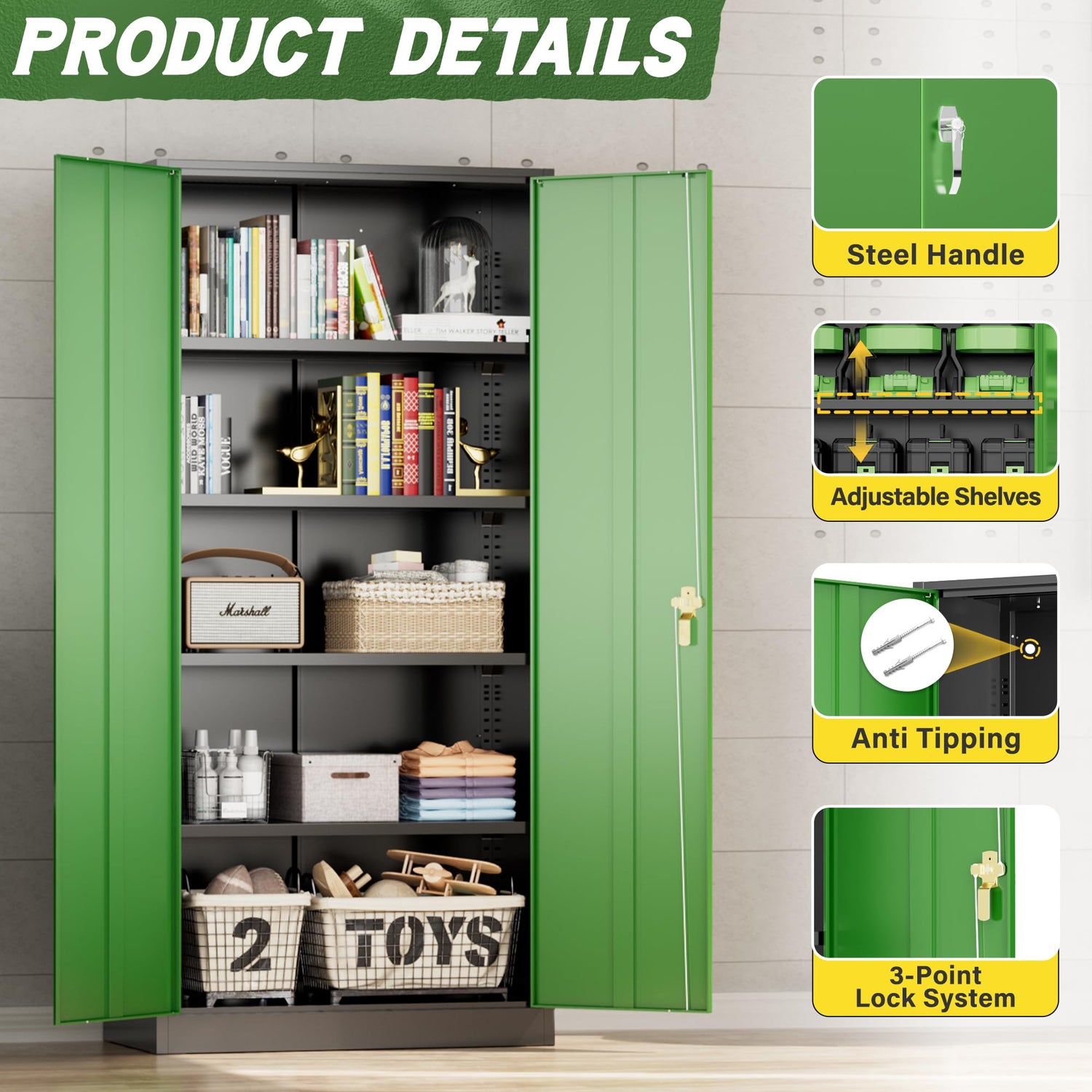 - [Big Size & Large Storage]:Greenvelly (72”)steel storage cabinets have a popular size (72*36*18),and each one has four adjustable shelves inside, which can be adjusted according to the height and size of the storage goods. This lockable storage cabinet is suit for many scenes,such as garage,home,office,school,etc.