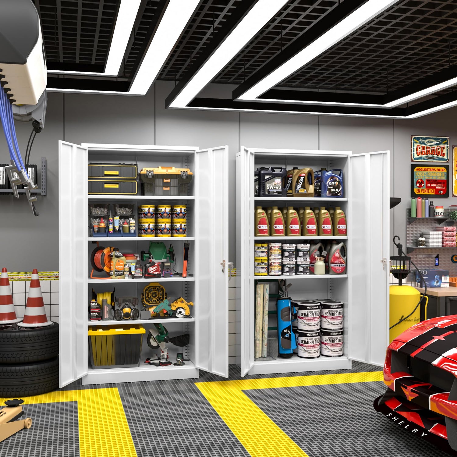 Greenvelly Metal Garage Storage Cabinet, White Steel Lockable Cabinet with 2 Doors and 4 Adjustable Shelves, 71" Utility Metal Filing Cabinet with