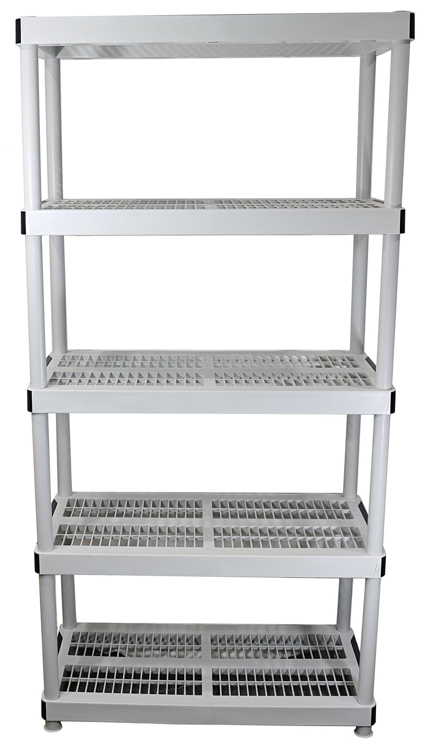 HDX 36” x 72” 5-Tiered Ventilated Plastic Storage Shelving Unit w/ Raised Feet and Tool-Free Assembly