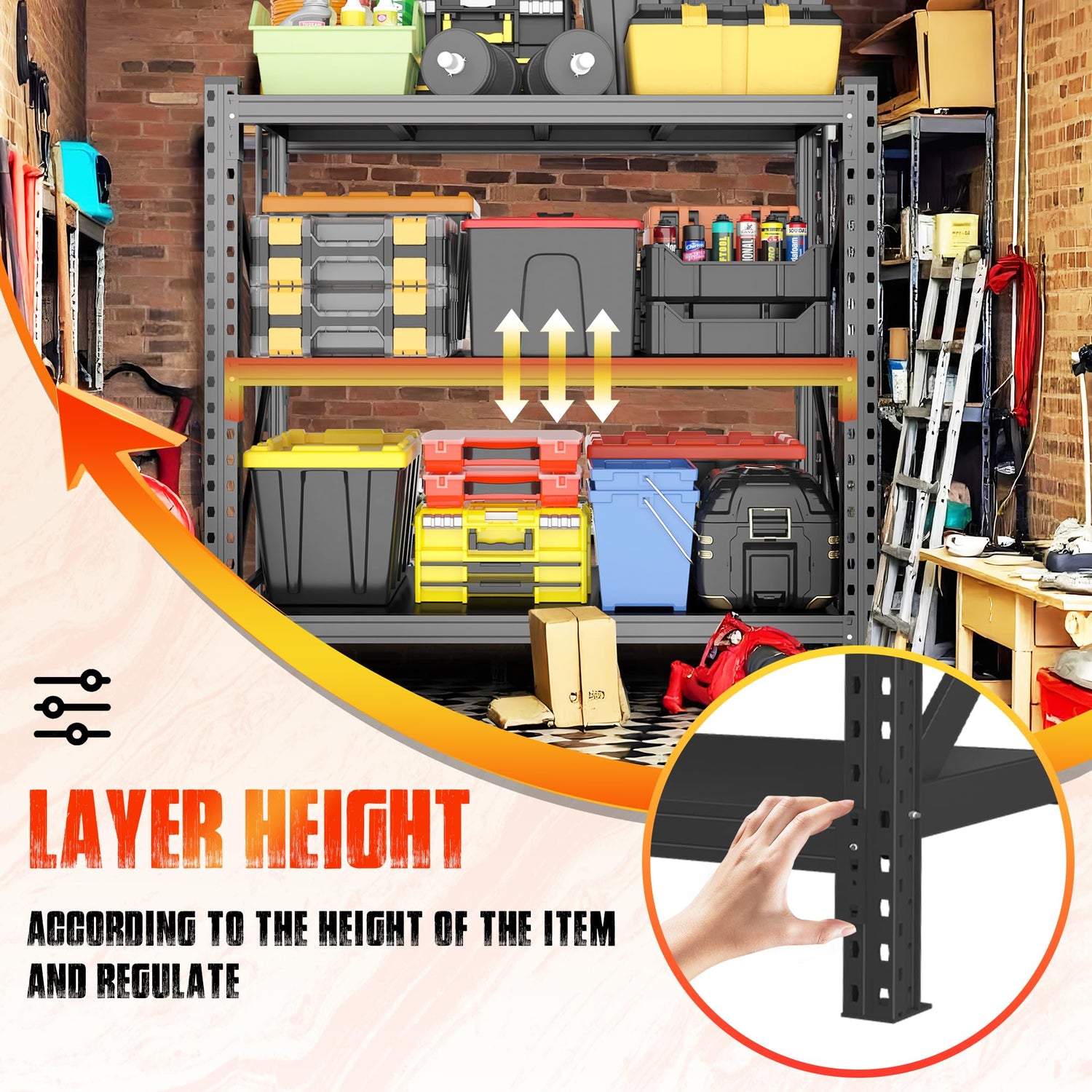 - 【THE ARTIFACT THAT MAKES YOUR GARAGE ORGANISED】Imagine your warehouse or storage room is always in a mess,things are piled up everywhere,and finding something is like looking for a needle in a haystack.but with our shelves,everything becomes different!our shelves not only keep your items neatly arranged,but also improve the storage efficiency of the warehouse,so that you can easily find what you want when you need it