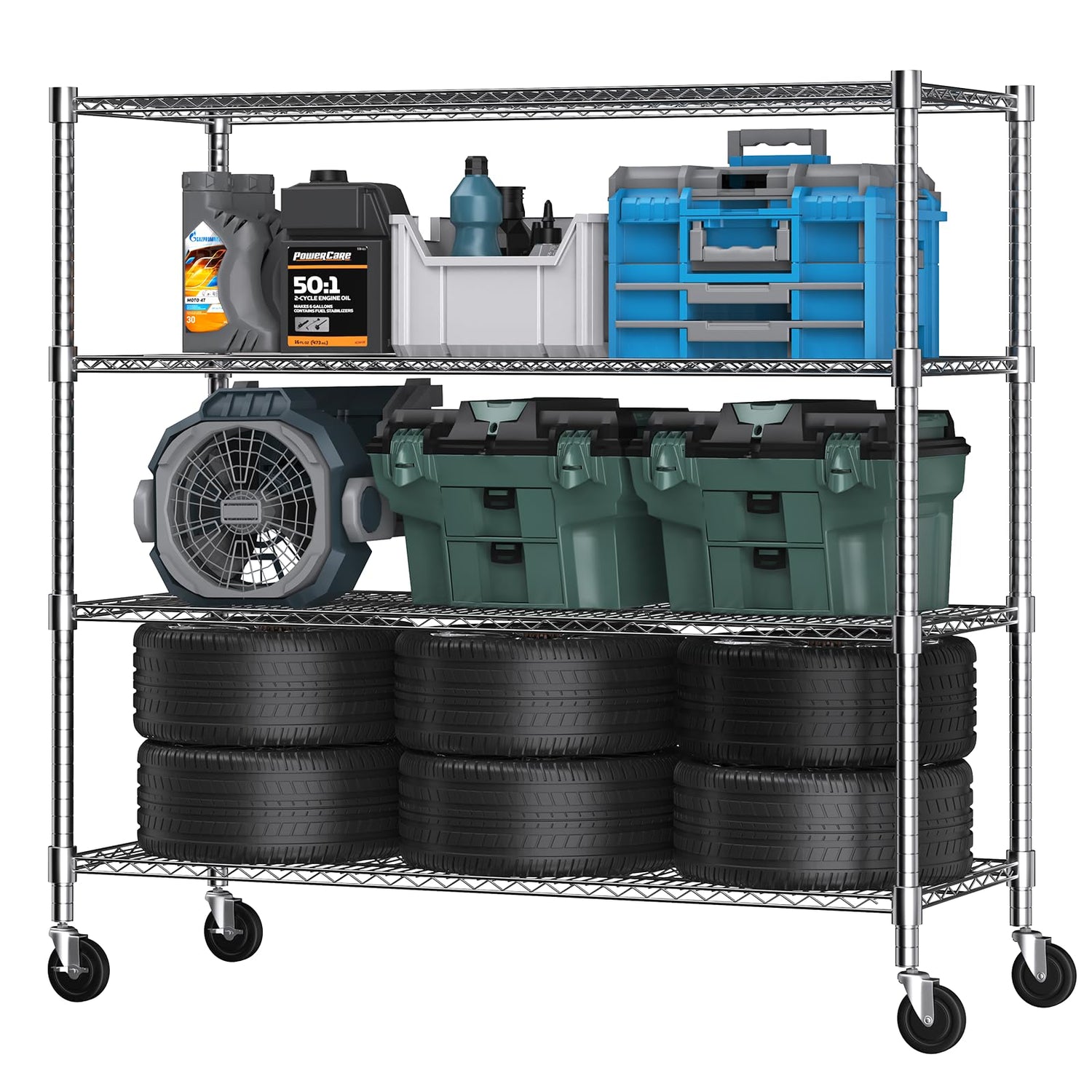 Himimi 72" H Storage Shelves 4 Tier Metal Shelving Adjustable Wire Shelf with Wheels, Heavy Duty Shelving for Garage Kitchen Pantry Bathroom Laundry,18" D*48" W*72" H, Silver