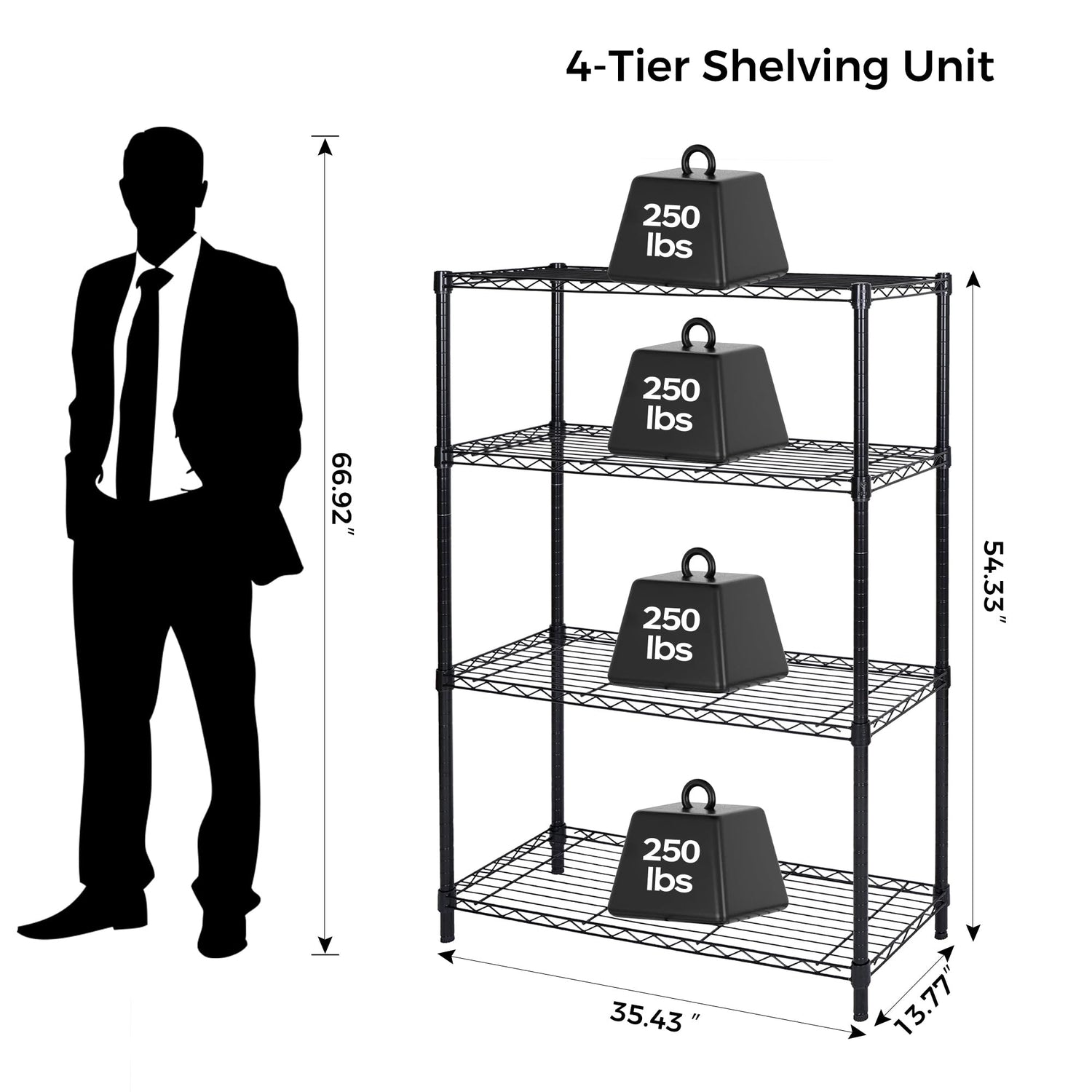 - QUALITY MATERIALS: Made of strong, sturdy carbon steel, sturdy and solid. The surface of this Metal Storage Shelves is specially coated to prevent rust or corrosion, so there is no problem placing this Storage Shelf even in the bathroom. This Wire Shelving Unit have a stable weight capacity of up to 250 lbs. per shelf and 1000 lbs. in total