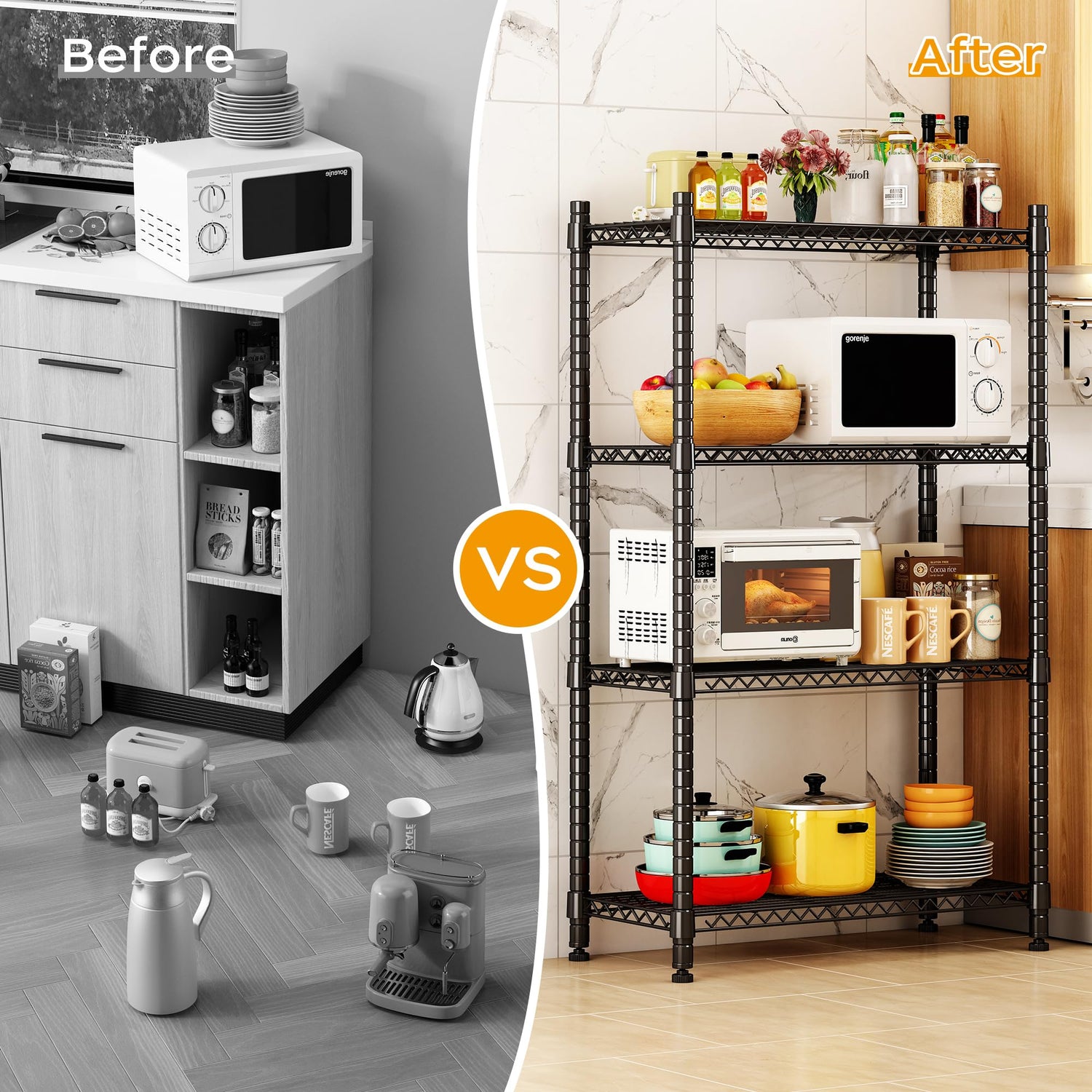 - CONVENIENT and PRACTICAL: The 4-tier Wire Shelving provides convenient storage space for easy access to tools and supplies. Without taking up too much space, it provides you with extra storage space, say goodbye to clutter and create a relaxing and comfortable home