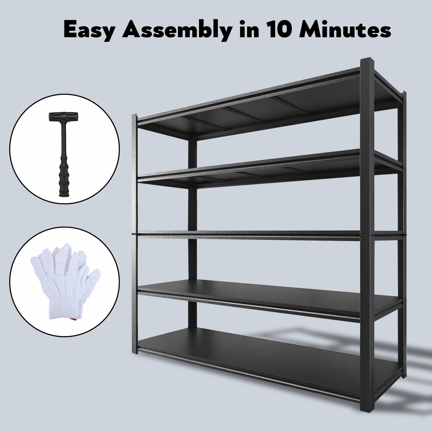 - Adjustable 5-Tier Design: The versatile design of our storage shelves allows for customizable storage solutions. With five adjustable tiers, you can configure the shelving unit to accommodate different-sized items, providing flexibility for your storage needs.
