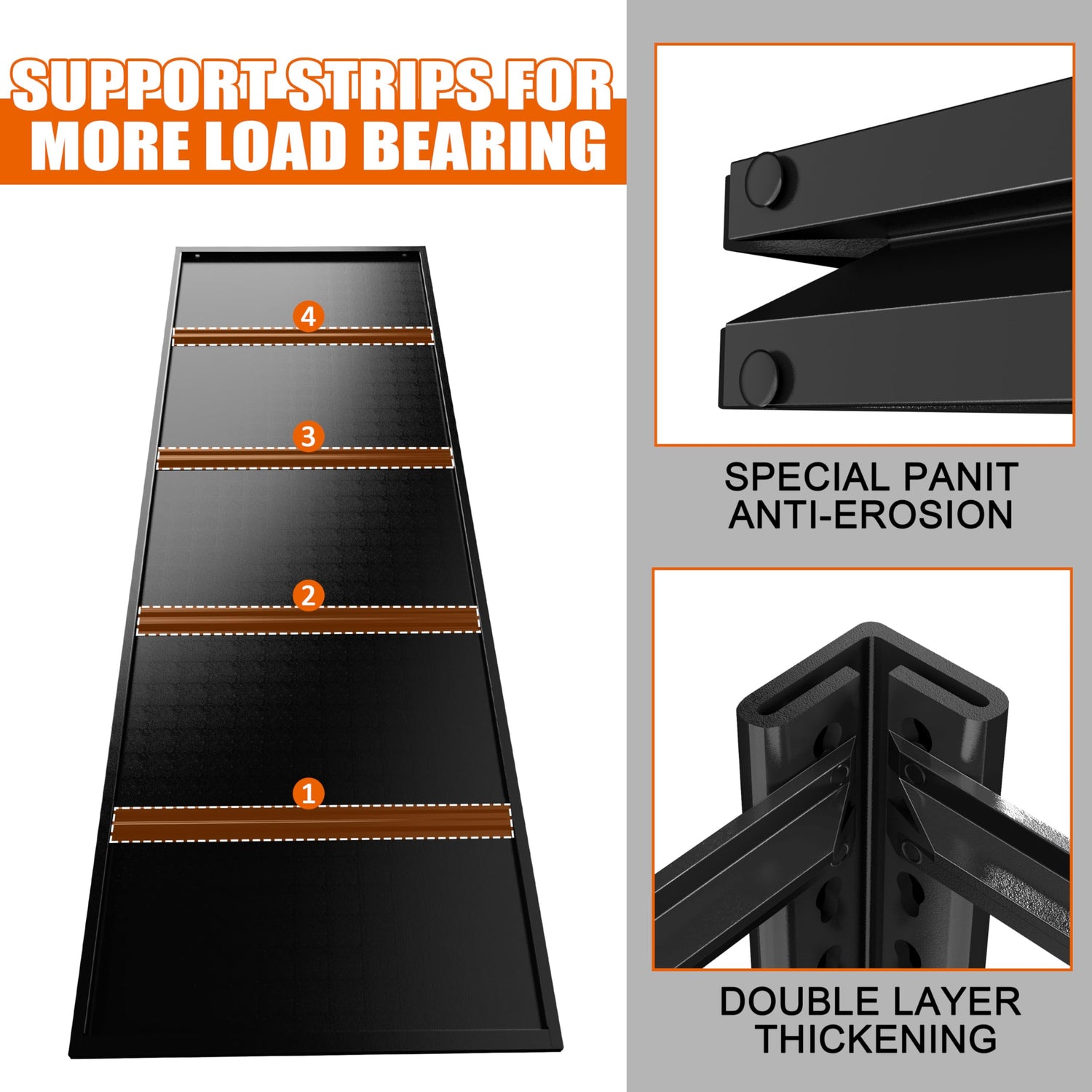 - 【Adjustable 5-Tier Design】The versatile design of our storage shelves allows for customizable storage solutions. With five adjustable tiers, you can configure the shelving unit to accommodate different-sized items, providing flexibility for your storage needs. The garage shelf is not only a practical storage solution but also a stylish addition to your workshop or garage.