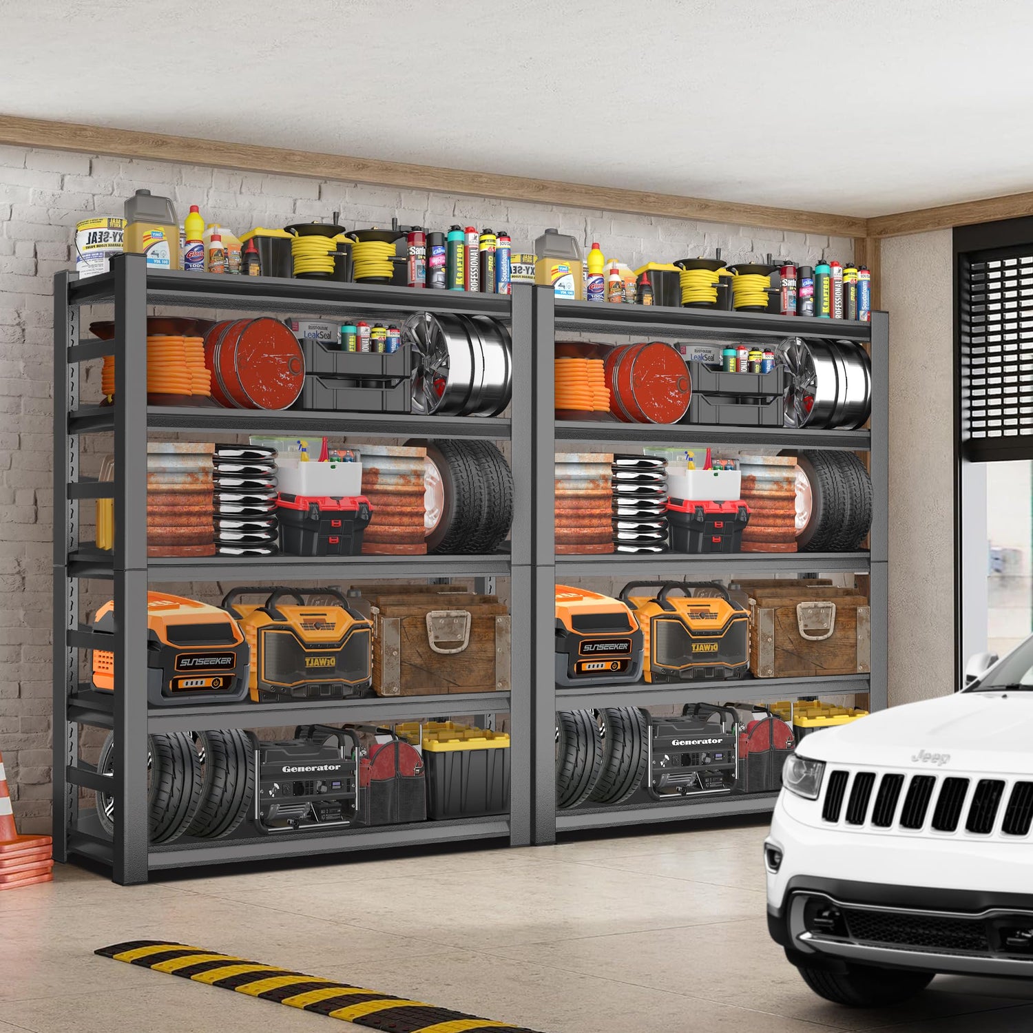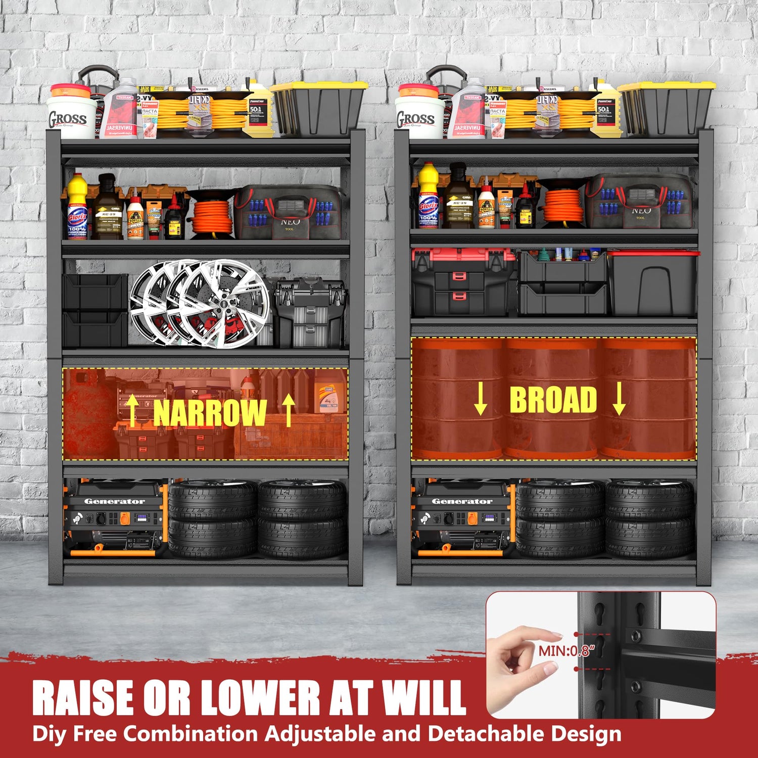 • 【Garage Shelving Heavy Duty】:Our metal storage shelves are made of heavy-duty steel and have been upgraded to double layered columns, each with supporting ribs, and the surface of the shelves is coated with high-quality powder coating. It is not only sturdy and durable, but also ensures that the shelf maintains its appearance and performance in various environments. Each shelf can carry up to 800 pounds, and the maximum weight capacity of 4000 lbs.