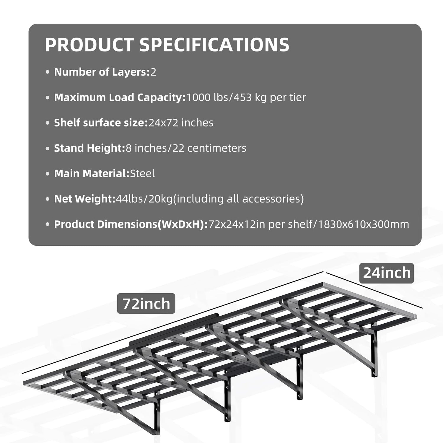 • Package Included: Contains 2-Pack garage wall-mounted shelves, all the wrenches you need, and expansion screws for cement walls and self-tapping screws for wooden walls (expansion screws are not required for wooden walls)
