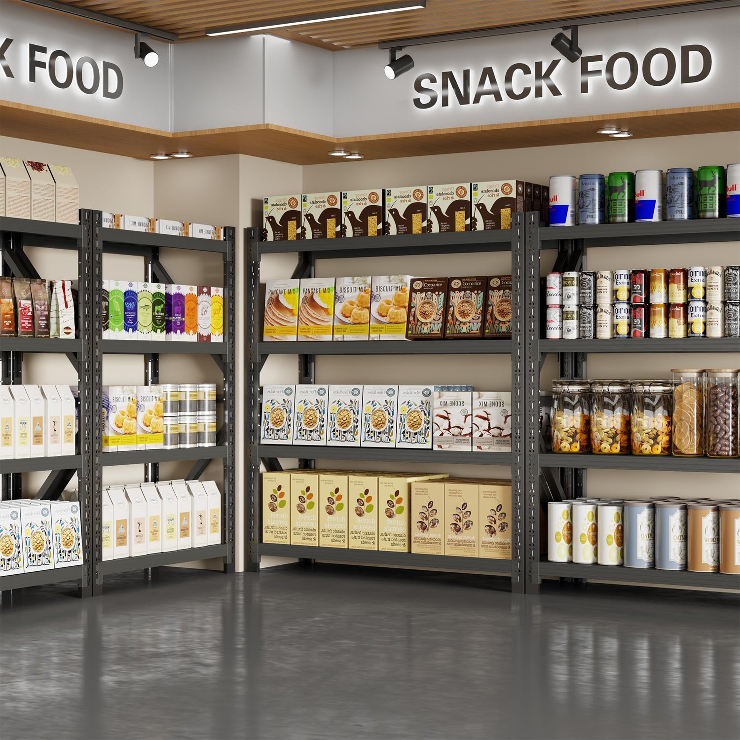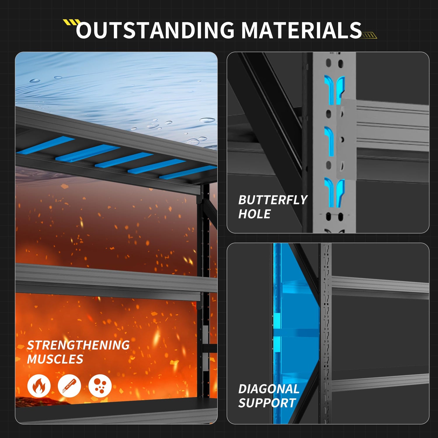 - [Stylish Design, Versatile Integration] This shelving for garage is finished with classic paint, rust resistant and corrosion resistant.The metal garage storage is easy to clean and maintain, the appearance is simple and stylish, suitable for garage, gym, kitchen, warehouse, living room, bedroom, basement, workplace and other environments.Whether you need to store books, kitchen supplies, or toolboxes, this metal rack can be easily adapted to provide endless possibilities for your personalized storage needs