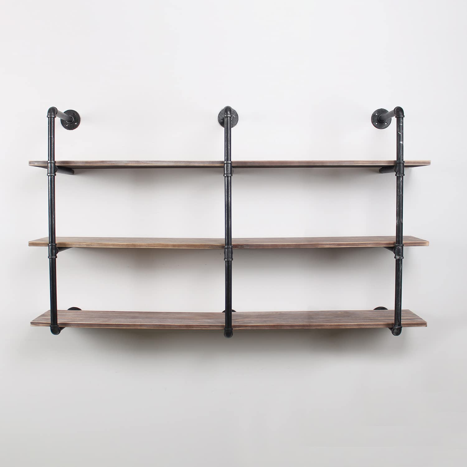 Industrial Pipe Shelving Wall Mounted,63in Rustic Metal Floating Shelves,Steampunk Real Wood Book Shelves,Wall Shelf Unit Bookshelf Hanging Wall Shelves,Farmhouse Kitchen Bar Shelving(3 Tier)