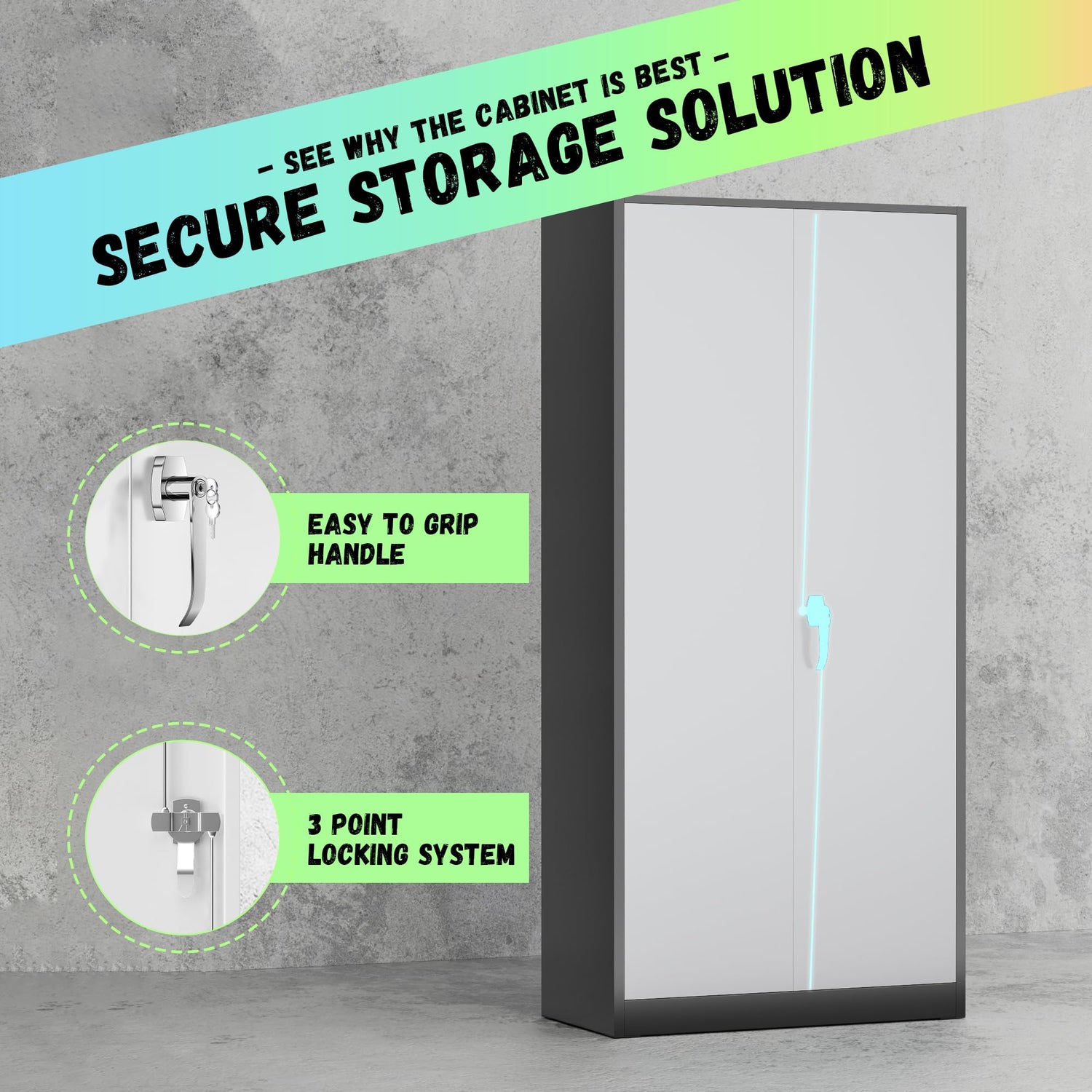 • 【3 point interlocking】: Intergreat upgrades the locking system of garage storage cabinets, the metal storage cabinets use high security 3-point interlocking system, it can protect the safety of important documents and items. Also with two keys. The metal filing cabinets are very suitable for home office, garage, kitchen, utility room.