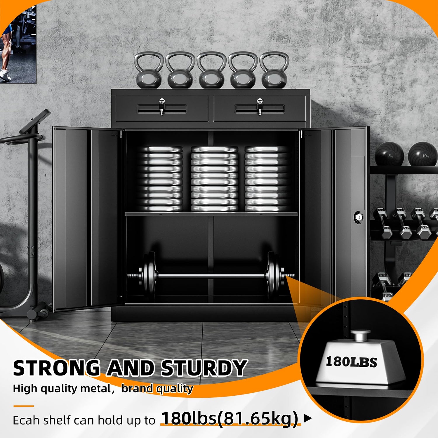 - [Practical and Durable] Intergreat lockable garage storage cabinet, equipped with drawers and adjustable shelves, can be moved up and down according to your needs. The overall framework of the steel tool cabinet is forged from 08mm cold-rolled steel, which is very sturdy and durable. Each layer can bear 180 pounds, and there is no need to worry about storing heavy documents and tools without a place. Lockable metal filing cabinets are suitable for storing office documents, tools.