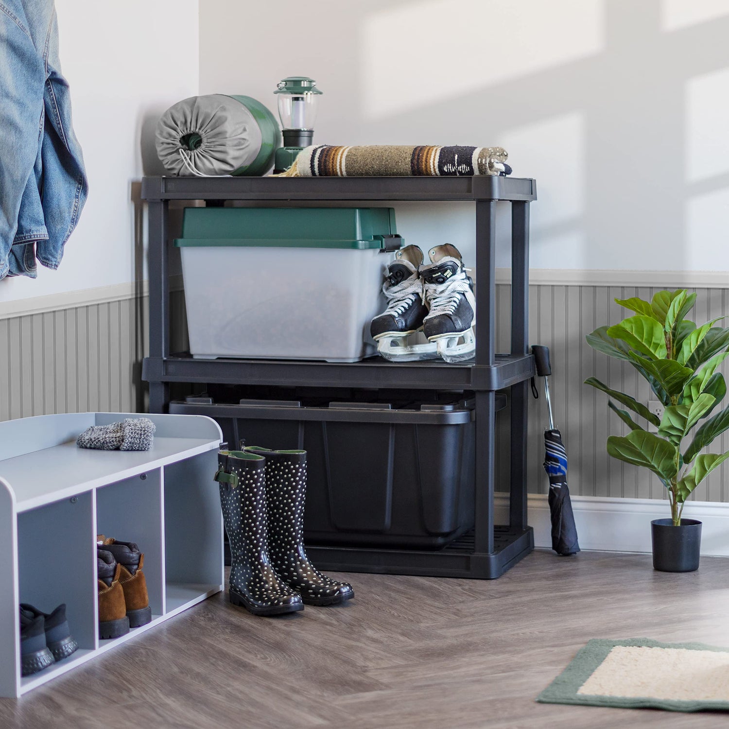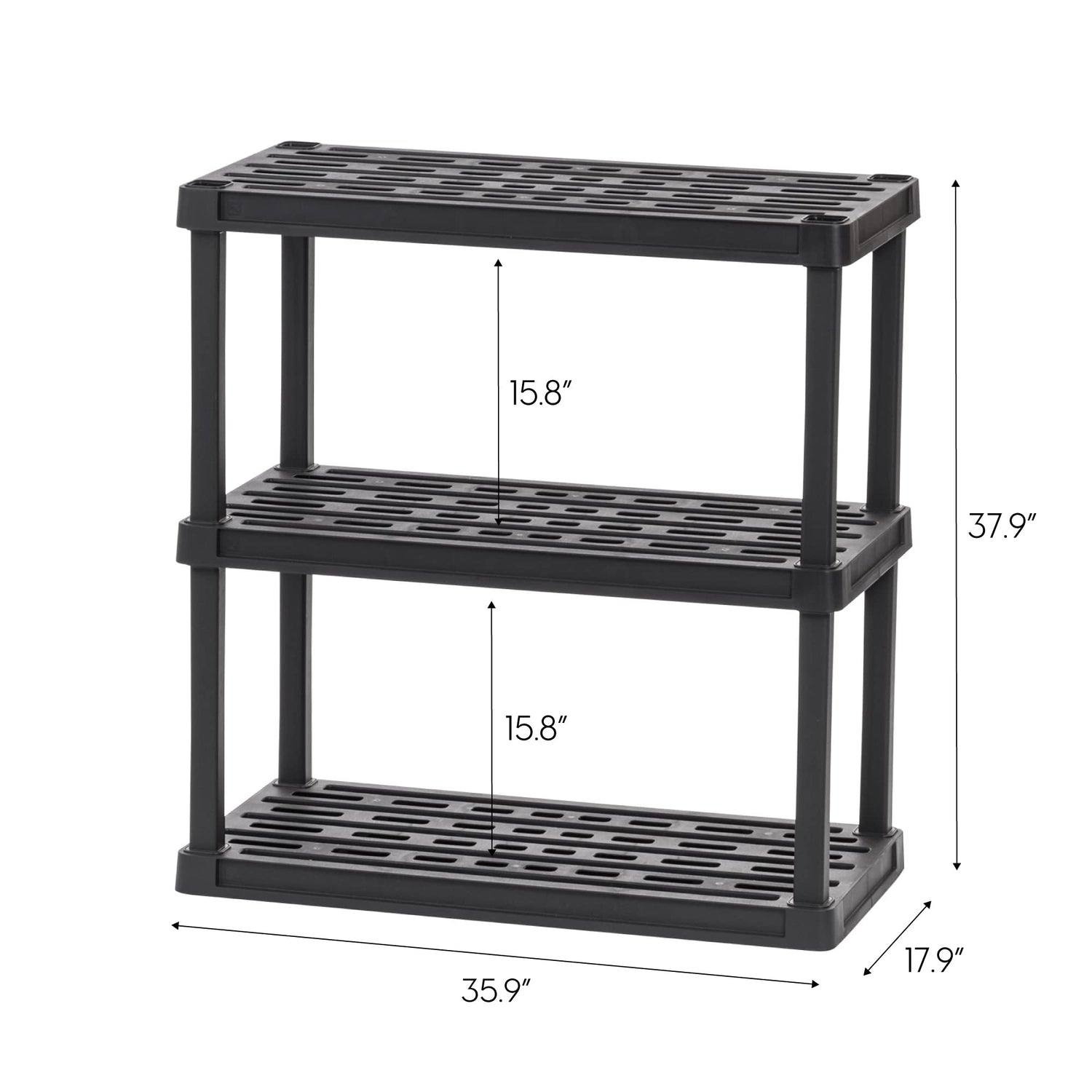 IRIS USA 3-Shelf Heavy Duty Plastic Storage Shelves, 450lb Capacity, 38"H x 36"W x 18"D, Large Modular Shelving Unit Storage Organizer for Garage, Home, Warehouse & Gym, Storage Rack - Black