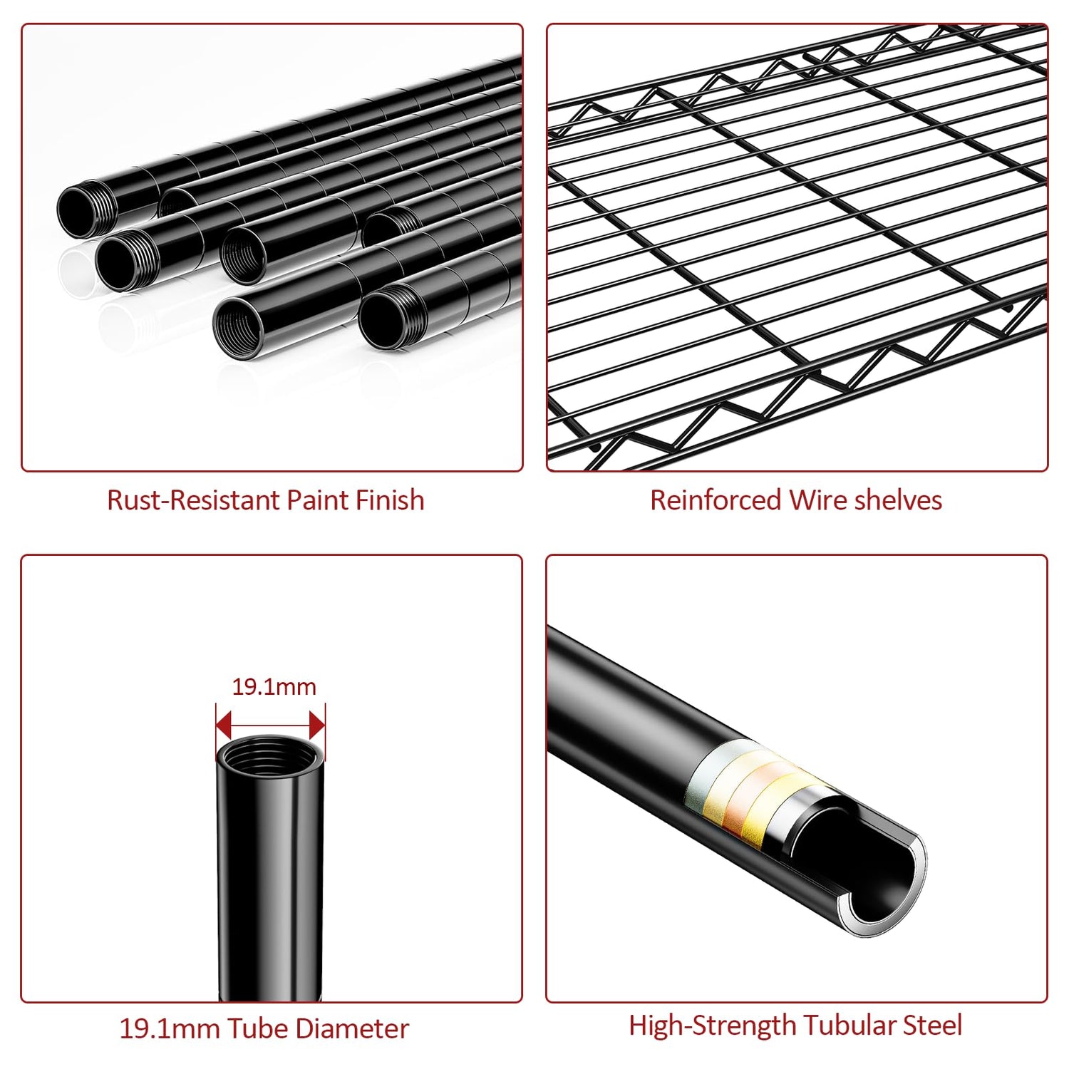 - Durable Coated Frame: Constructed with carbon steel and finished in matte black powder coating for enhanced rust resistance; supports up to 1000 lbs per unit; suitable for storing kitchen tools, bins, or laundry items