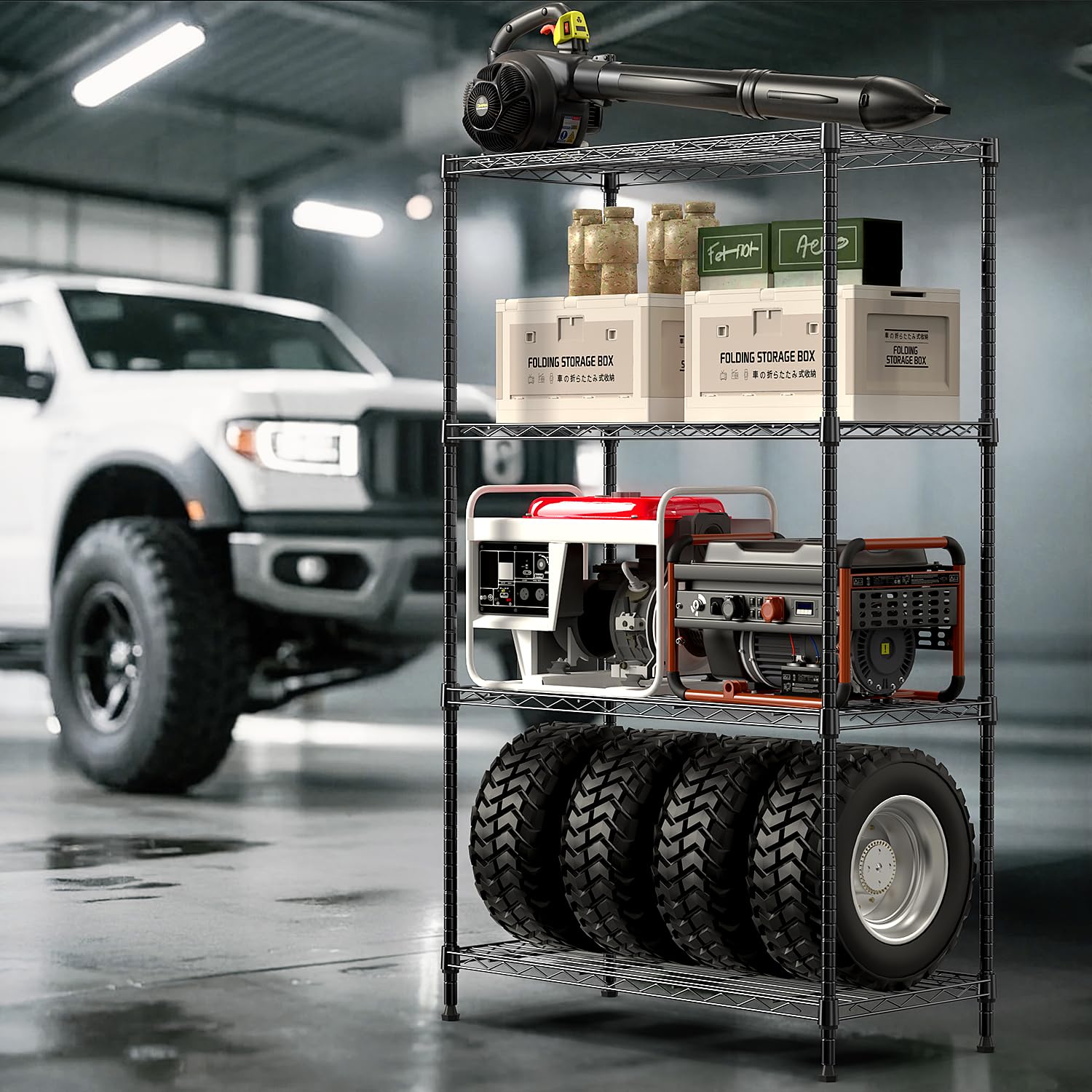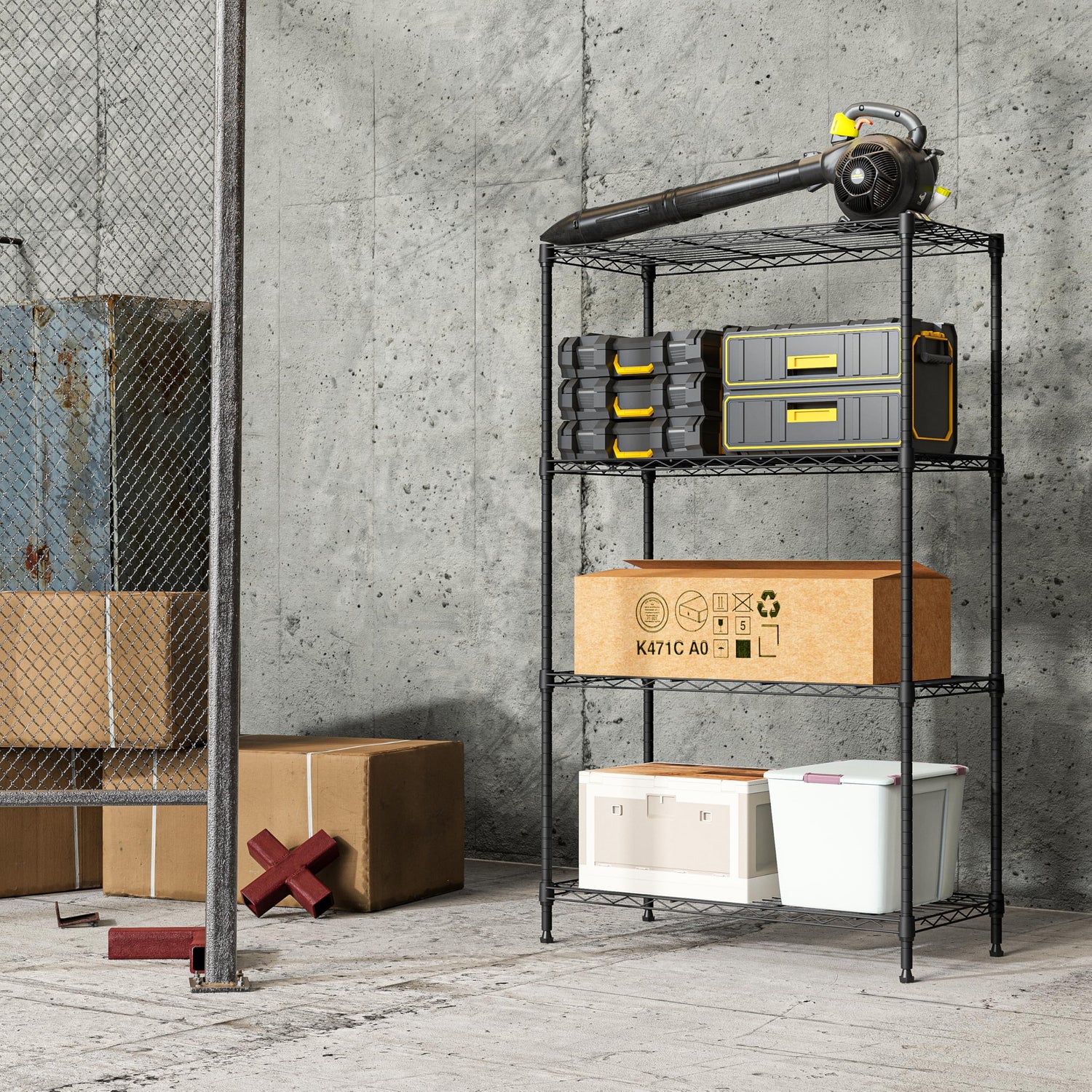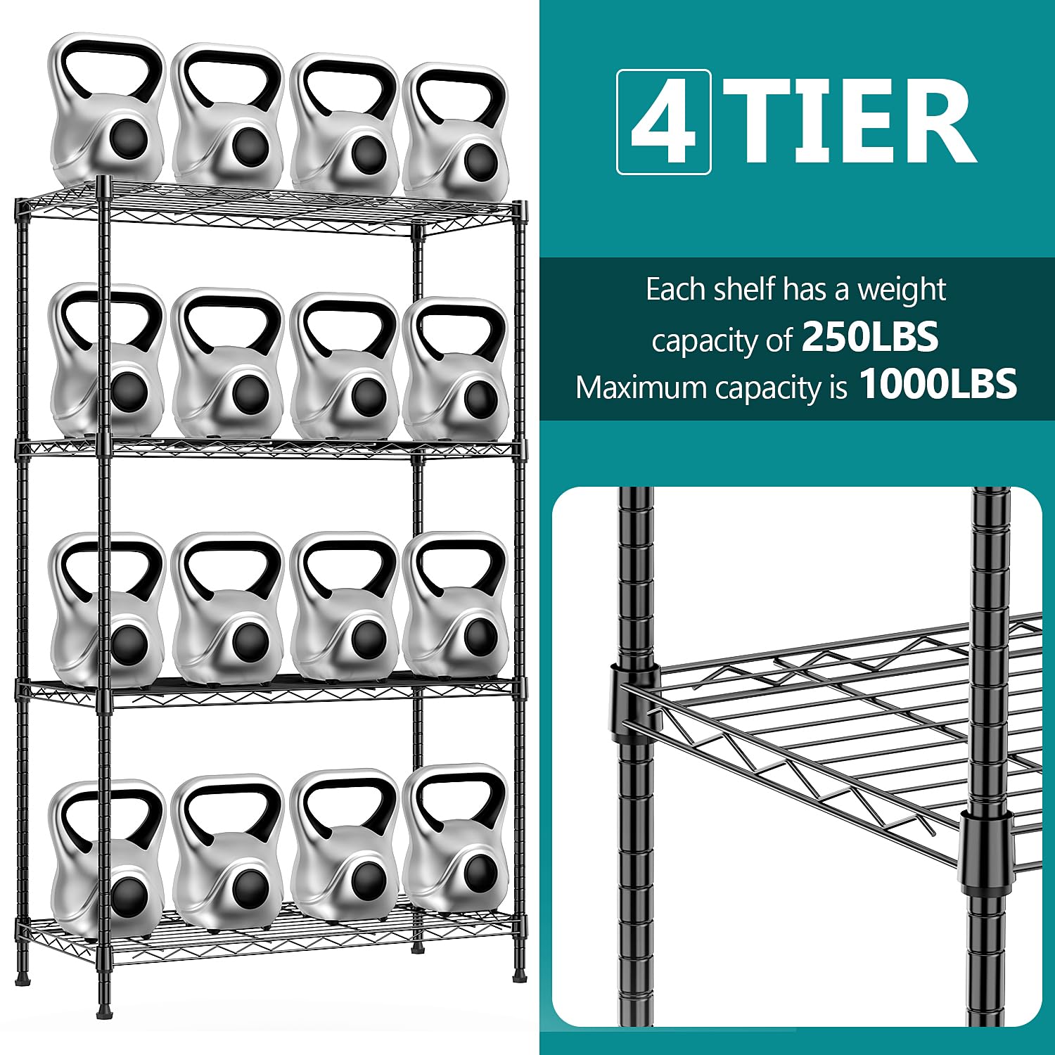 IZEUK 4-Tier Heavy Duty Steel Storage Shelves, Metal Shelf Wire Shelving Rack for Pantry, Kitchen, Garage, or Office Organization (29.5" W x 13.7" D x 47.2" H, 1000LBS, Black)