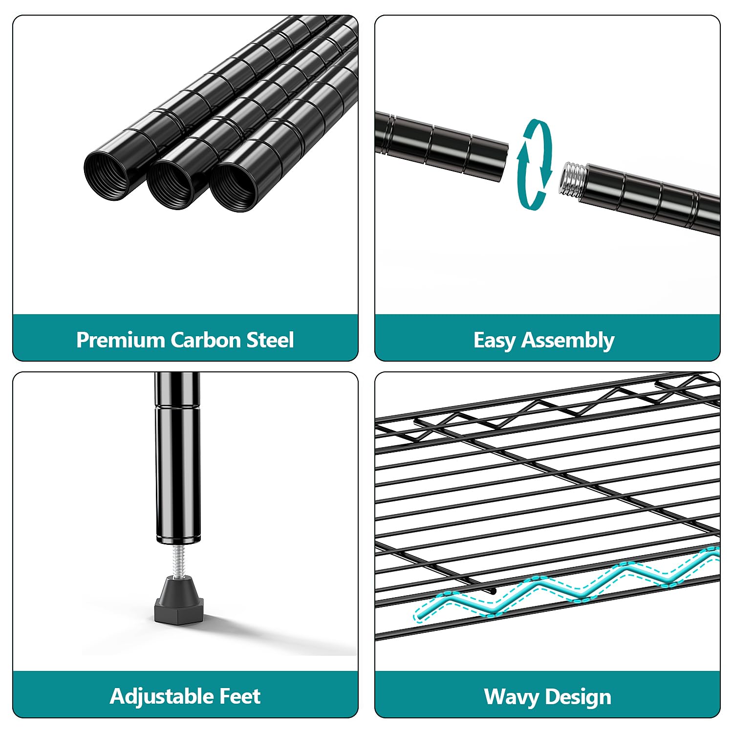 - 【Rust & Dirt Resistant】This IZEUK 4 tier shelf is built with a powder-coated surface that resists rust and dirt, ensuring long-term durability. Ideal as a wire shelving rack or skinny shelf for kitchen, pantry, or garage organization.