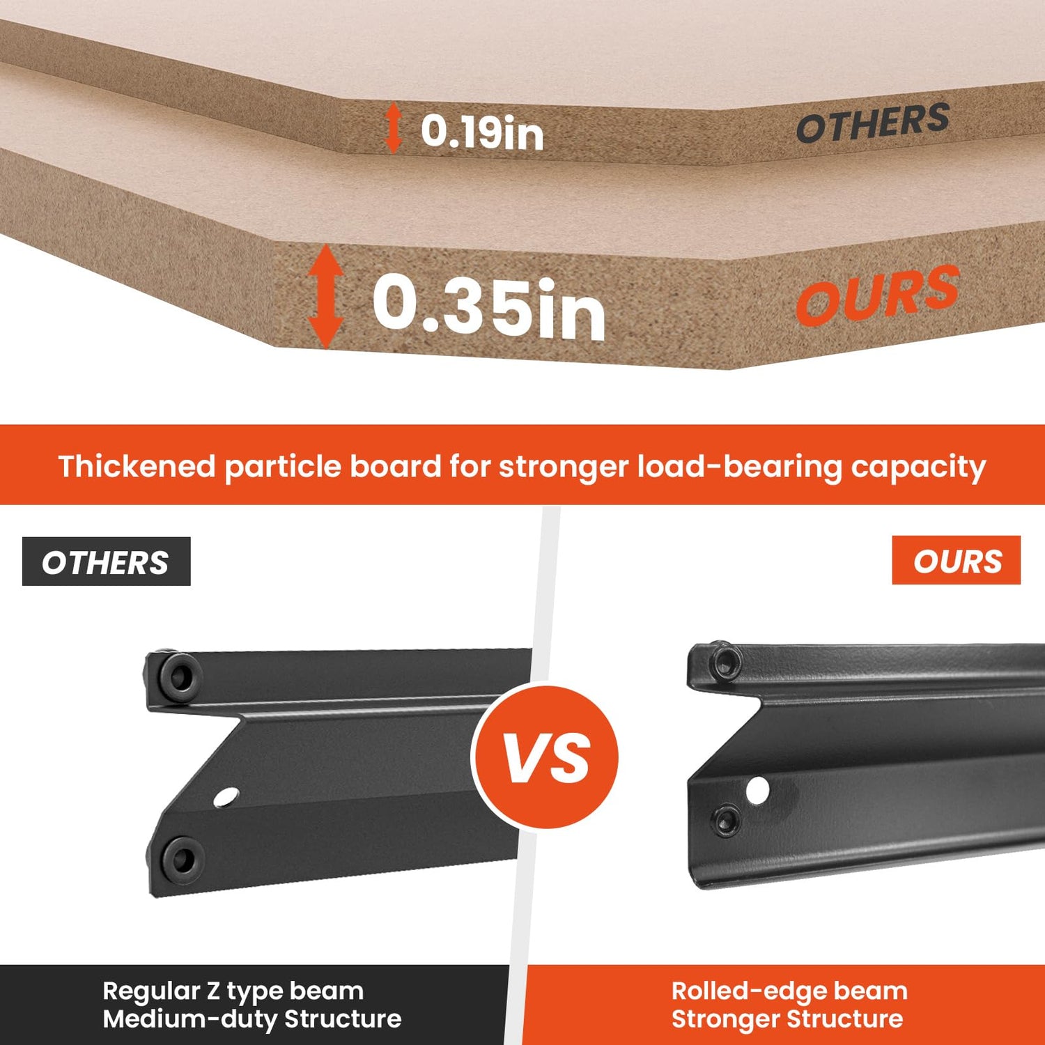 - 3200 Lbs Load Capacity: Each honeycomb shelf bears up to 800 lbs (evenly distributed), 3200 lbs total, ideal for storing power tools, heavy machinery, large bins, or stacked toolboxes in garages or workshops. No sagging, no bending—even under substantial weight, it stays steady and strong.