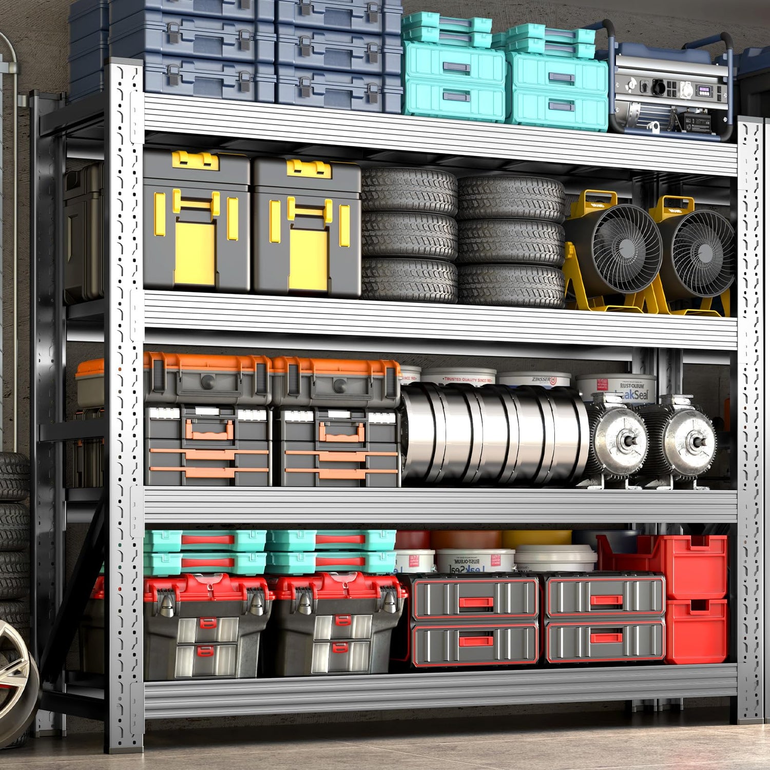 - 【Multi-Purpose Heavy Duty Storage Rack】Perfect for garage, warehouse, basement, or pantry, this metal shelving unit offers strong, stable storage for everything from containers to power tools and household supplies.