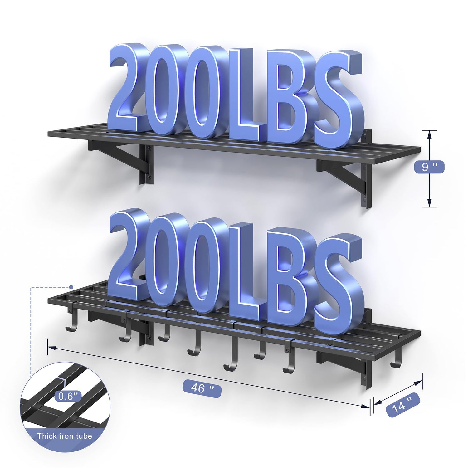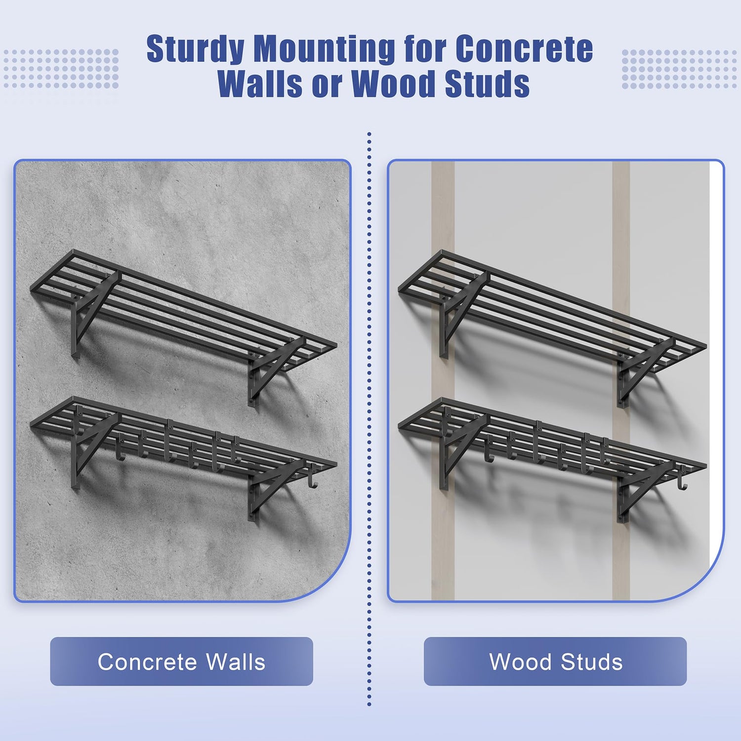 - PREMIUM STRENGTH & STABILITY: Engineered with heavy-duty steel, our wall shelf system features reinforced square tube supports, a seamless integrated frame, and secure U-hooks for superior durability. Every component undergoes rigorous quality testing to ensure maximum safety and long-lasting performance