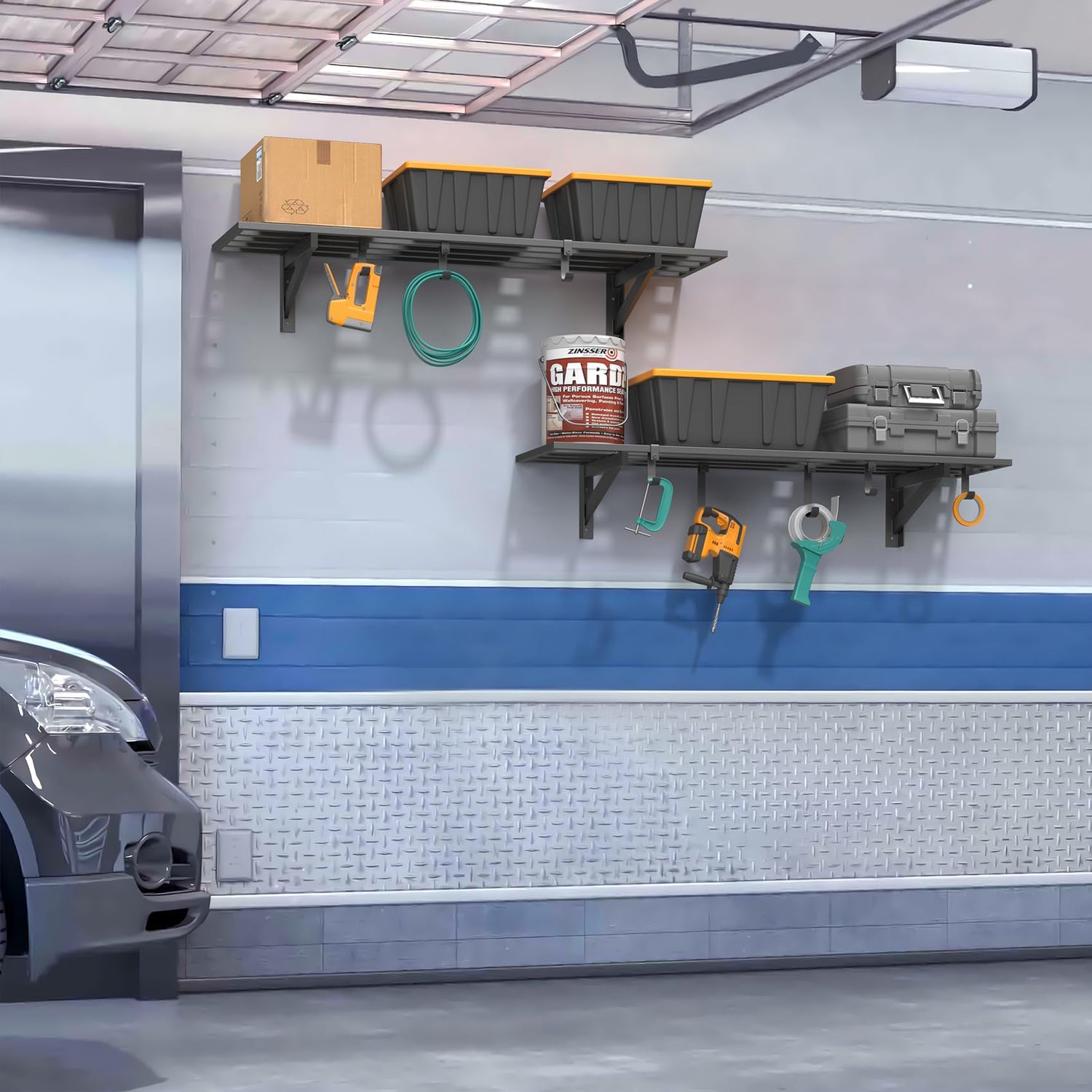 - HEAVY-DUTY GARAGE SHELVING: Our 2-Pack wall-mounted shelves provide generous storage, featuring two 1'x4' shelves per unit. Built from heavy-duty steel, each shelf holds up to 200 lbs, offering a combined capacity of 400 lbs. Ideal for garages, warehouses, offices, and beyond, these shelves are designed for durability, stability, and efficient space organization