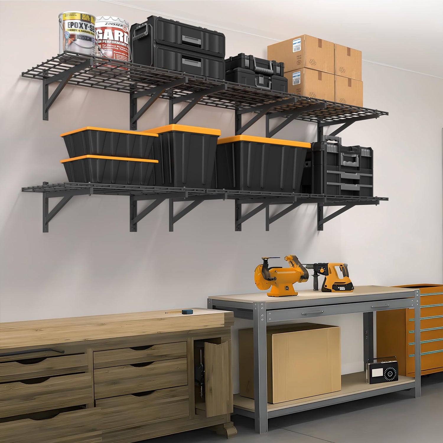 - đŚăAll-in-One Mesh Storageă- The seamless welded mesh design securely holds tires, sports gear, toolboxes, and plastic bins without sagging. Open-grid airflow prevents dust buildup, while the anti-rust coating ensures durability in humid garage environments.