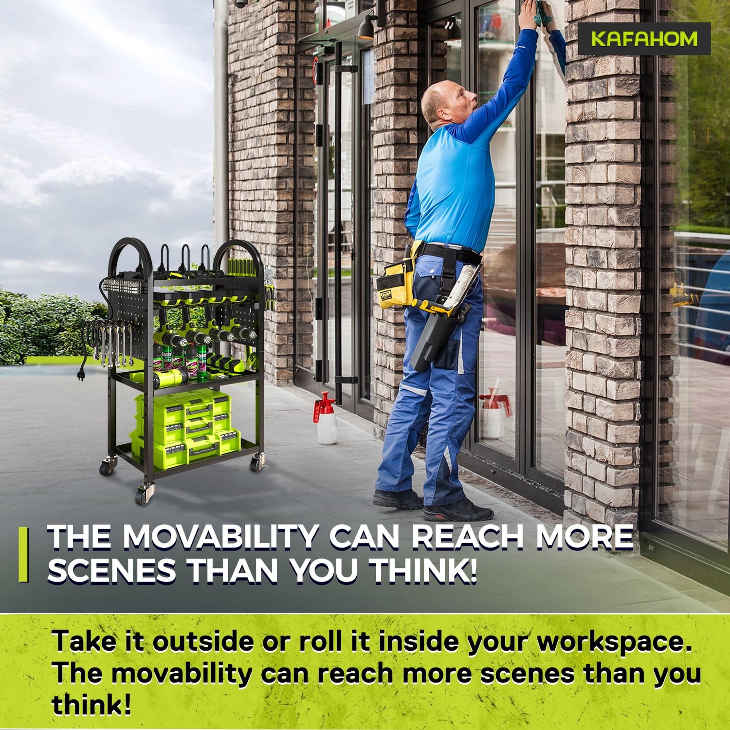 - Ultimate Mobility and Flexibility: The KAFAHOM 4 Layer Power Tool Storage Rack is designed for unparalleled convenience with four 360-degree swivel casters. These wheels allow for smooth and effortless movement across various surfaces. Each wheel is equipped with a lock mechanism, ensuring the rack remains stable and secure when stationary. Perfect for both indoor and outdoor use, it provides flexibility for any workspace.