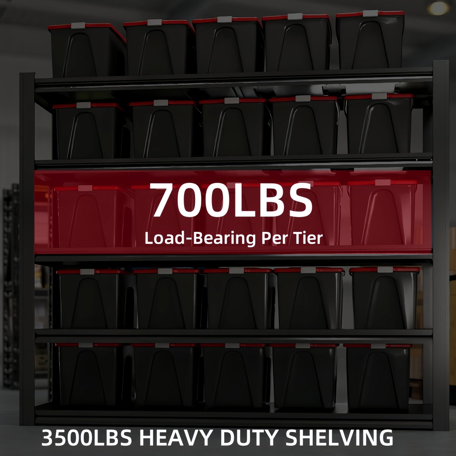 • 【Sturdy and Durable Garage Shelves】Garage shelving is made of premium metal and feature double-thick legs and a rust-resistant coating for added durability.No wobbling or shaking when fully loaded as one-layer vertical support bar will help distribute the pressure and increase the overall stability.The metal shelving will hold your merchandise better and remain stable. This stable storage shelves will serve you for many years and is ideal for storing heavy items