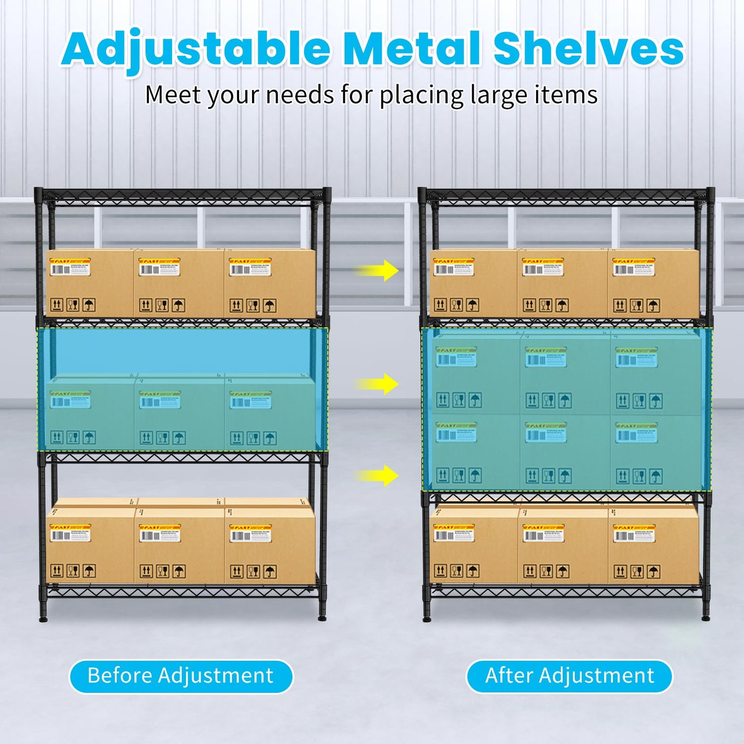 • HEIGHT ADJUSTABLE METAL SHELVES - Pantry shelves height can adjustable in 1-inch increments, suitable for different size and shape of items to get the best garage storage shelves. Keep your home well-organized