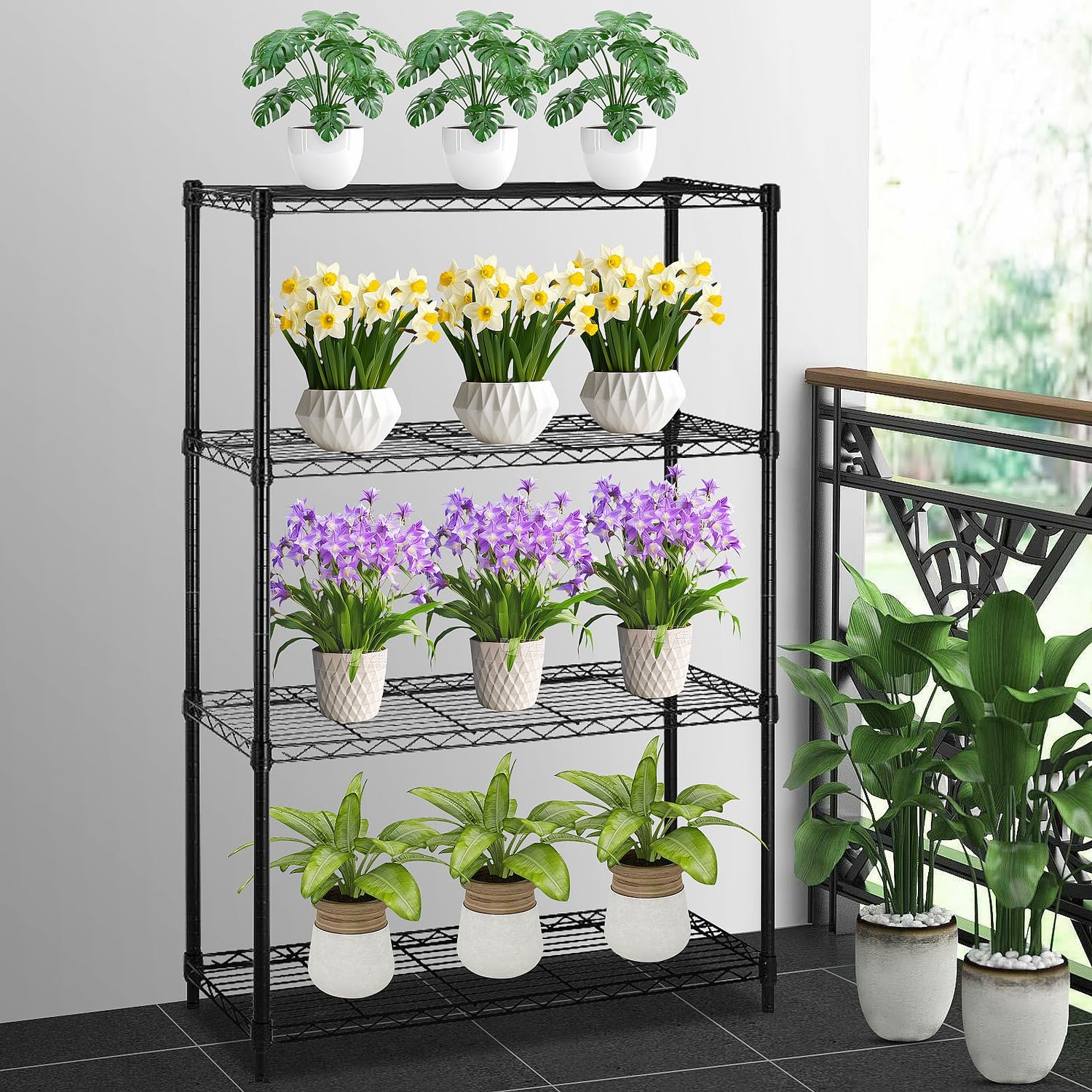 • 4 TIER SHELF ORGANIZER - Vertical compact design adds more living space with 4-tier of open shelving for easy access to items at a glance. Suitable for pantry, closet, kitchen, basement, office, garage, porch, etc