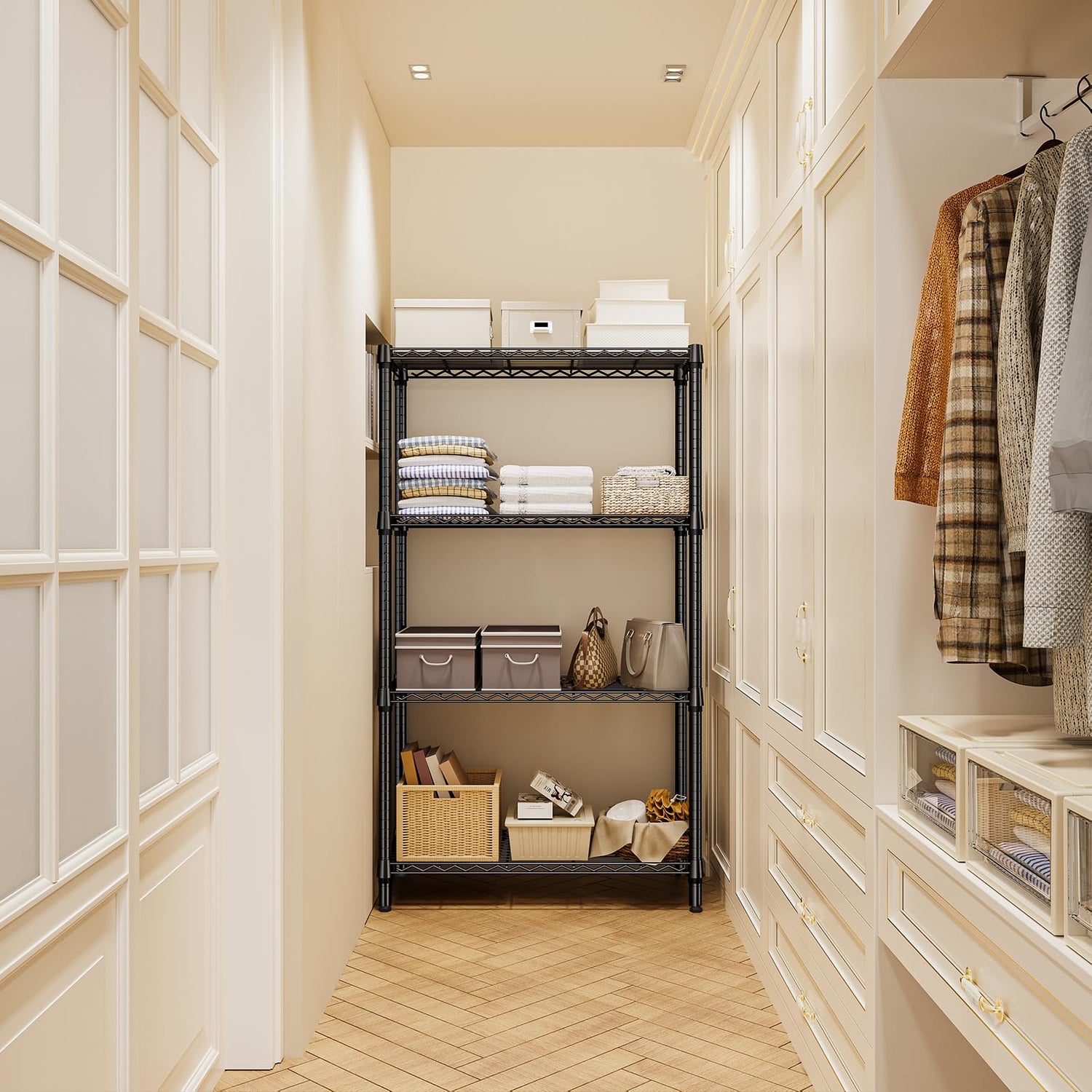 M MZG 1000 lbs 4 Tier Shelf Metal Storage Shelves Shelving Wire Rack Heavy Duty Closet Organizers for Garage Kitchen Bathroom Laundry Black 15.7" D x 33.5" W x 59.5" H