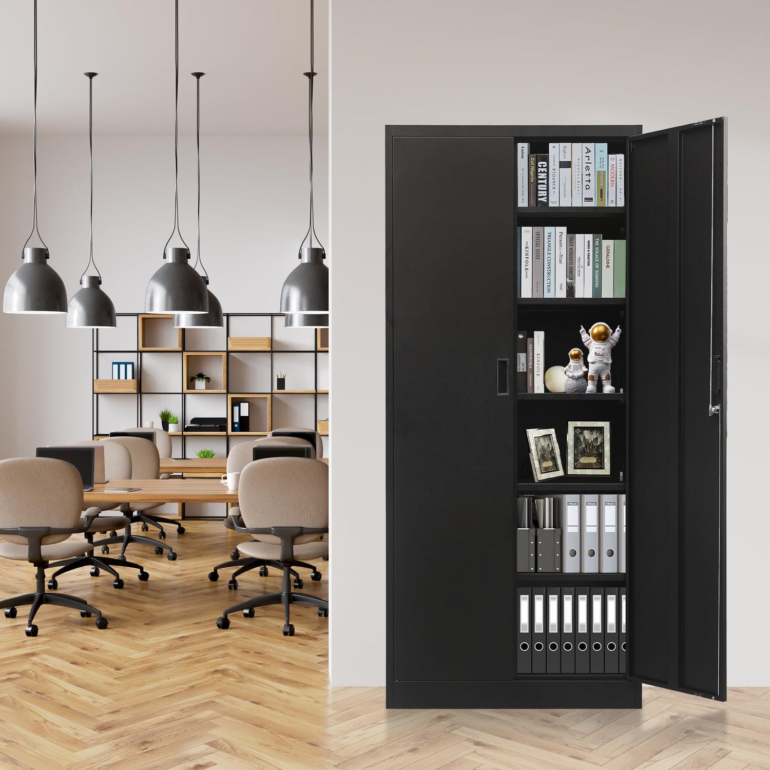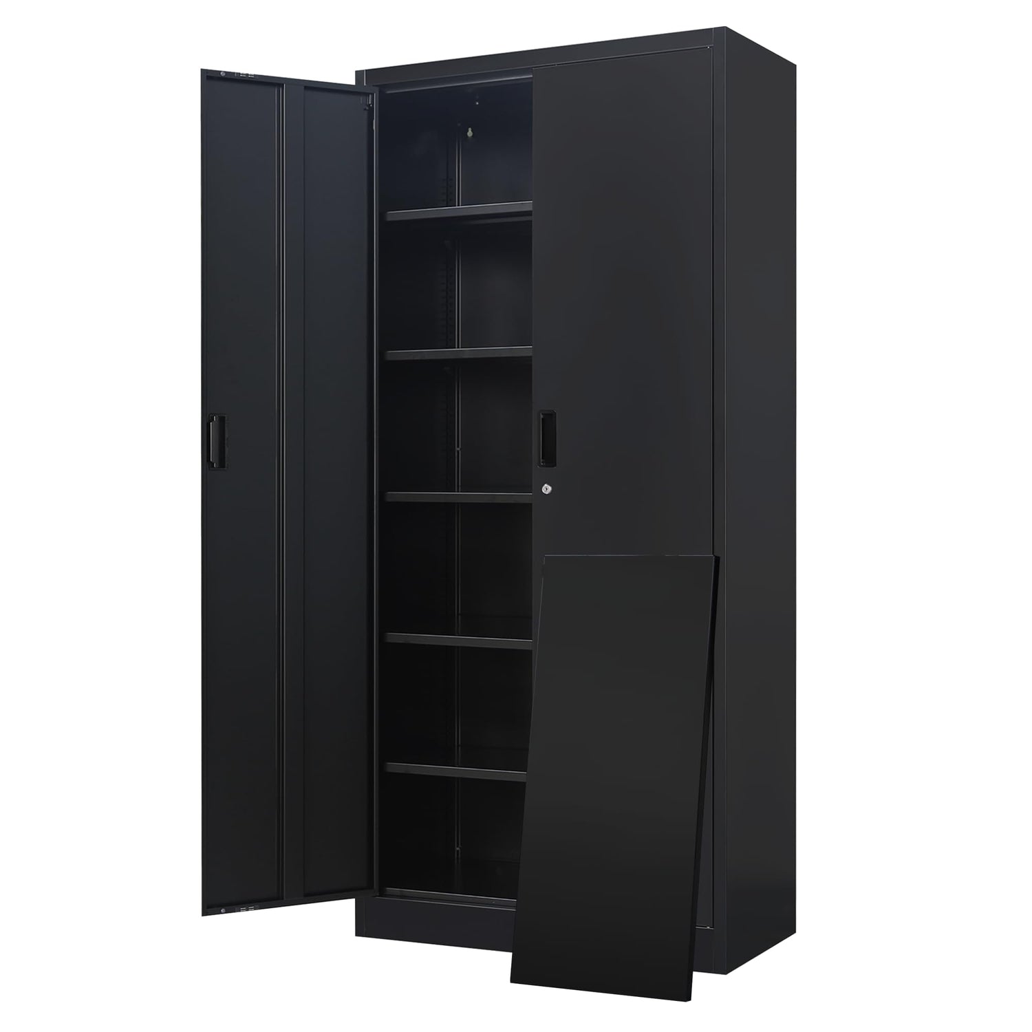 Metal Garage Storage Cabinets,71” Tall Metal File Cabinet with 5 Adjustable Shelves, Lockable Storage Cabinets for Office, Home, Garage, Warehouse 71" H x 31.5" W x 15.8" D (Black)