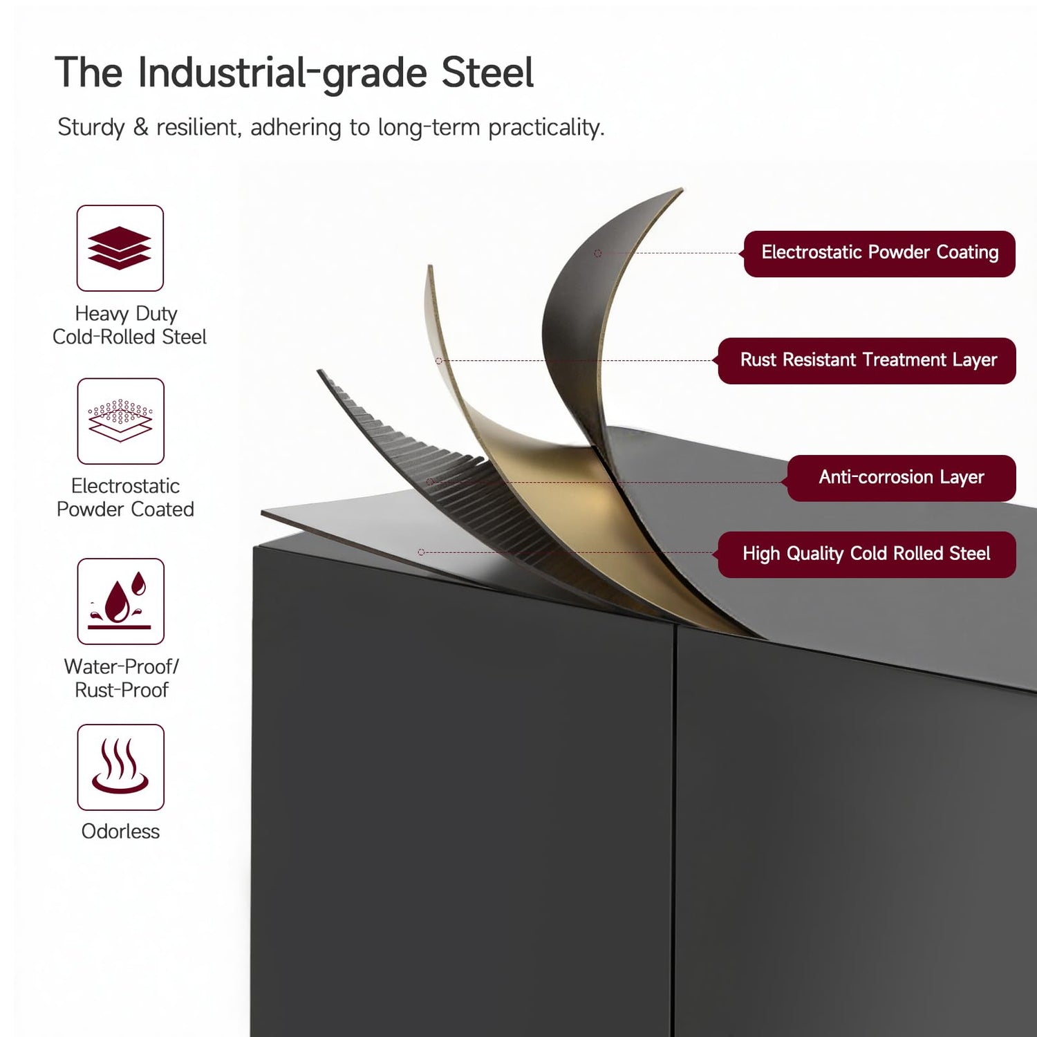 • Premium Quality Finishing:The metal storage cabinet features an epoxy resin powder-coated exterior, offering a smooth, water-resistant, and scratch-resistant surface. This high-quality finish ensures durability and easy maintenance, allowing you to keep it looking pristine with minimal effort