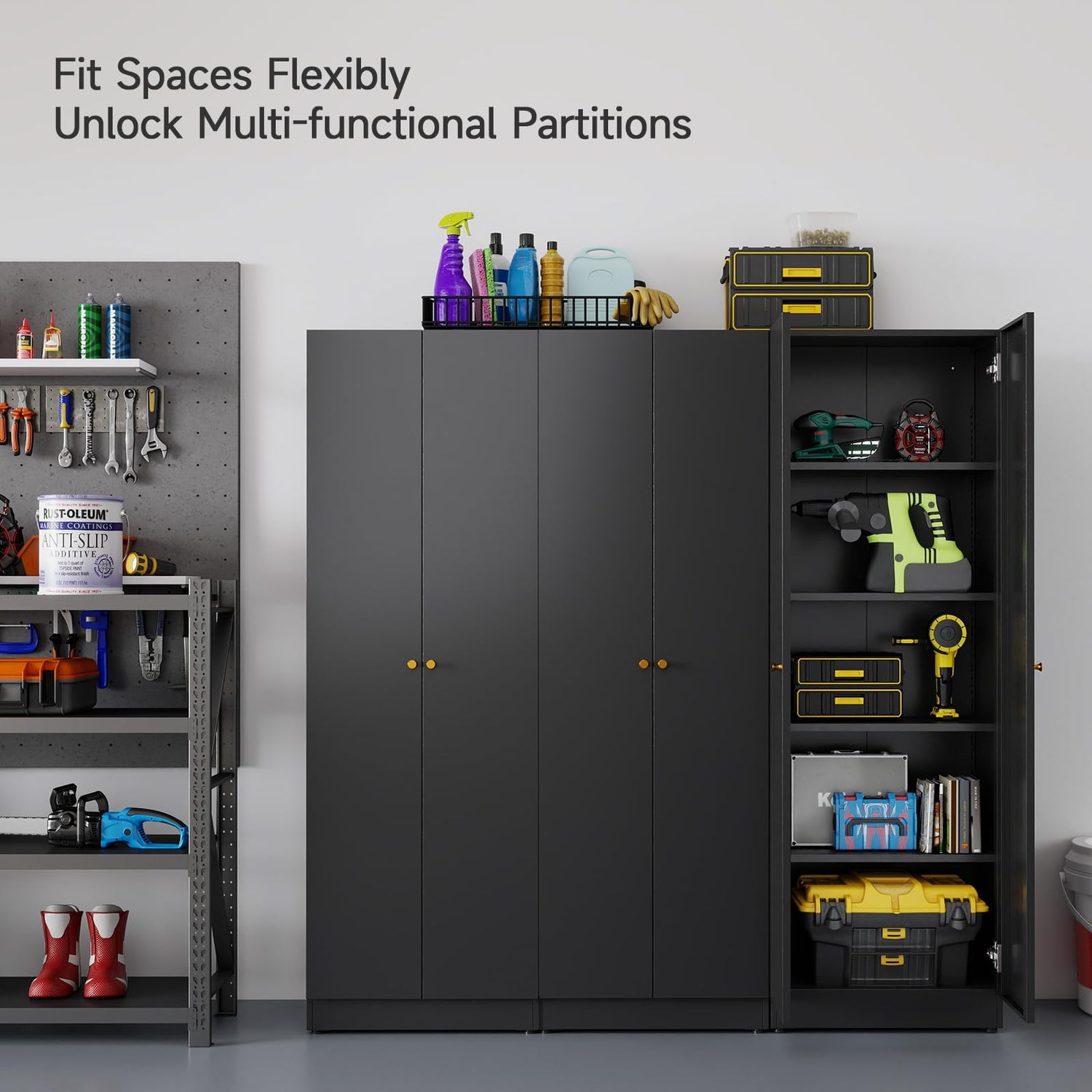 • Multi-functional Garage Cabinets: This utility cabinet is classic appearance, suitable for all types of living space. It can be served as a kitchen pantry cabinet, shop cabinets, office storage cabinet, file cabinet, media cabinet, craft storage cabinet, laundry room cabinets, black bookshelf with doors, tall bookshelf, 5 tier bookcase, tool storage cabinet to expand the storage space in home office, living room, kitchen, garage etc.