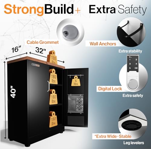 Details: METALTIGER Storage Cabinet H40 x W32 x D16- Digital Lock, Leg levelers (Black & Wood Color Top)