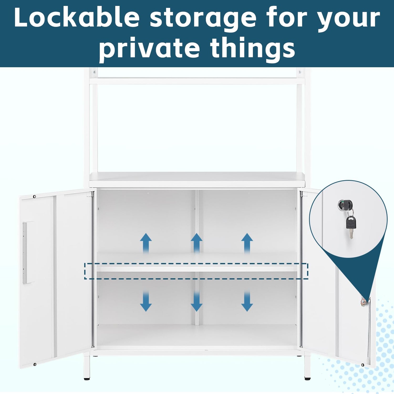 - 【Sturdy & Durable Metal Shelves】: This stylish shelves unit will brings your kitchen, home office and living room a simple, pretty and modern look. Made of cold-rolling steel with power coating, Sturdy Metal Construction will provide Strong load-bearing, high capacity and long life service. It can be used as a kitchen rack, pantry food cabinet, coffee bar station, microwave rack, garage shelves, or office file cabinet.