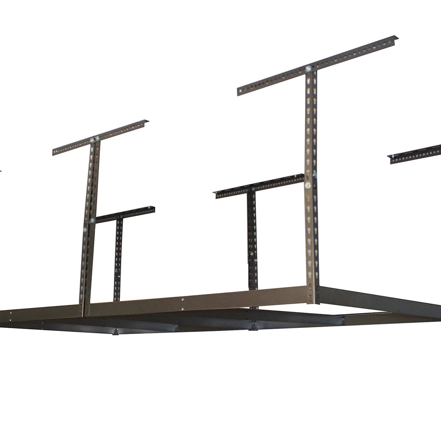 MonsterRax 4x8 Overhead Garage Storage Rack Frame Kit - Hanging Storage Shelves, Garage Ceiling Storage Rack System, Overhead Garage Organizers And Storage, Ceiling Shelving - (Hammertone, 12"-21")