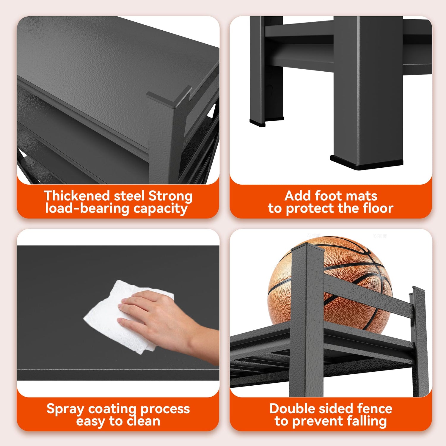 - 【Double-Sided Fence】The garage 、shelving features specially designed double-sided fences made from high-quality steel, ensuring durability and stability. These fences effectively prevent items from slipping during storage, offering comprehensive safety protection for your valuables. With the double-sided design, you can store items securely on both sides of the shelving, maximizing your storage capacity while maintaining organization and safety