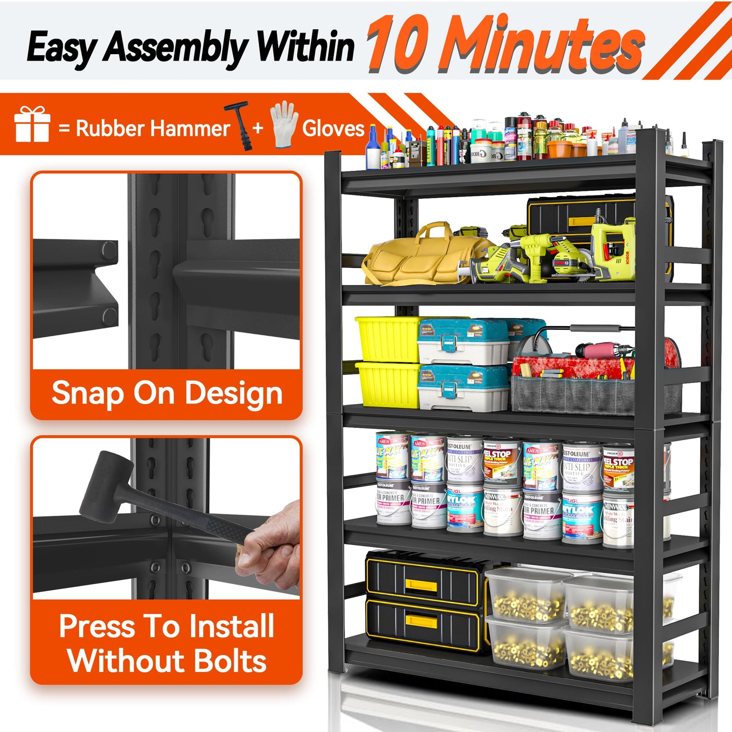- 【Simple Assembly】The garage shelving comes with a clear and easy-to-understand assembly guide, complete with intuitive step-by-step diagrams. Even if you're assembling shelves for the first time, you can easily put together the garage shelving and enjoy the fun of DIY. Its simple assembly process ensures that you can quickly set up your storage solution and start organizing your space with ease