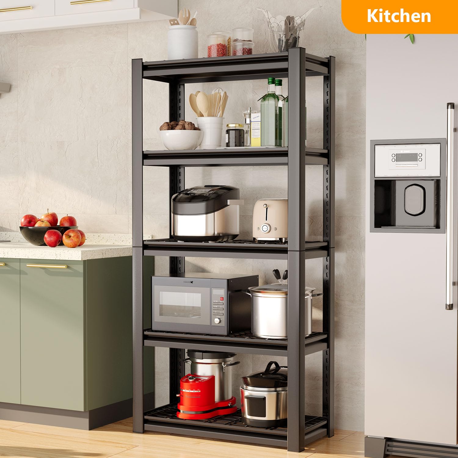 - [Sturdy & Durable Construction] This 5-tier metal storage rack is built with thickened steel legs and premium boards, offering superior durability and rust resistance. Each shelf supports up to 600 lbs, with a maximum load capacity of 3,000 lbs, making it ideal for garage shelves, warehouse storage, or basement organization.