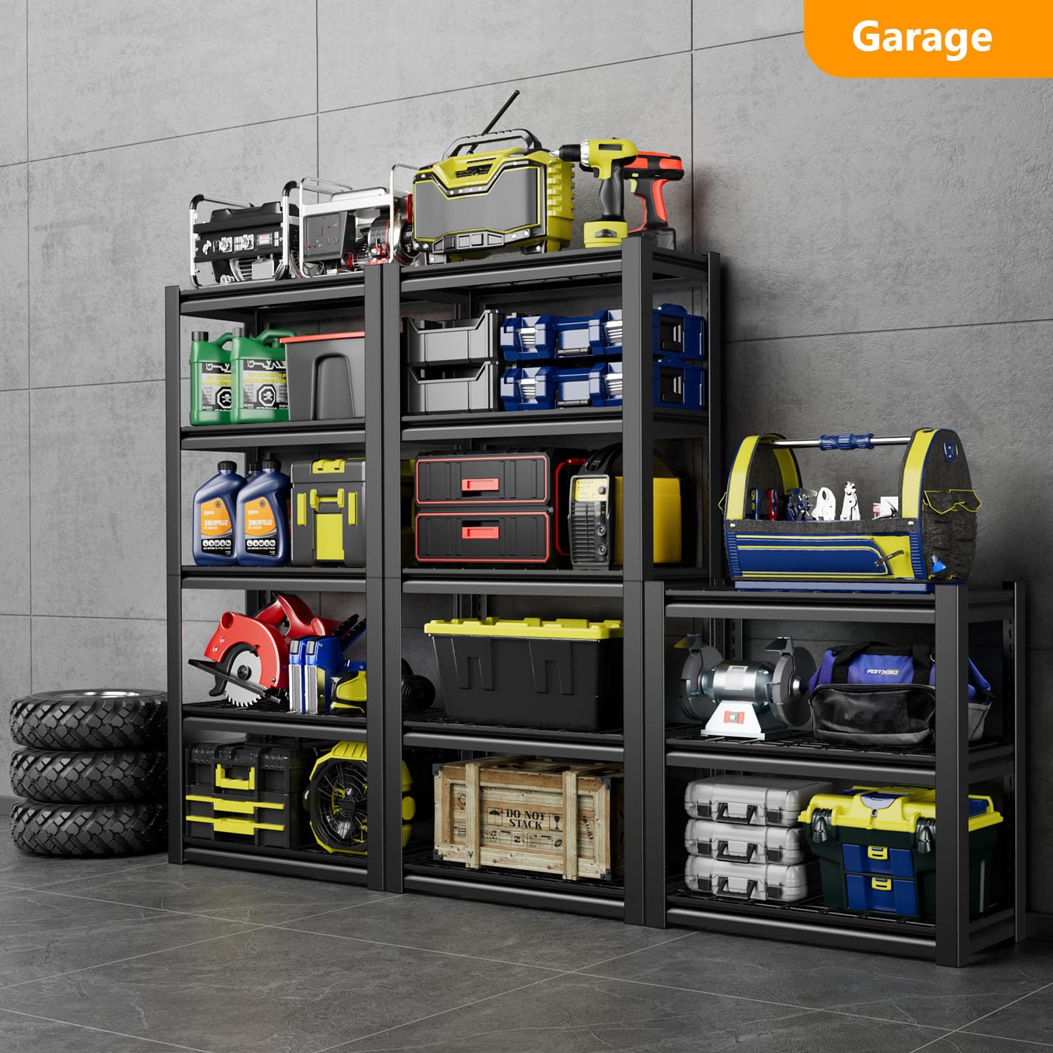 - [Height Adjustable Shelves] Designed for flexibility, each tier can be easily adjusted to fit items of different sizes, from tools, bins, and boxes to pantry staples and kitchen supplies, creating a fully customizable garage shelving system.