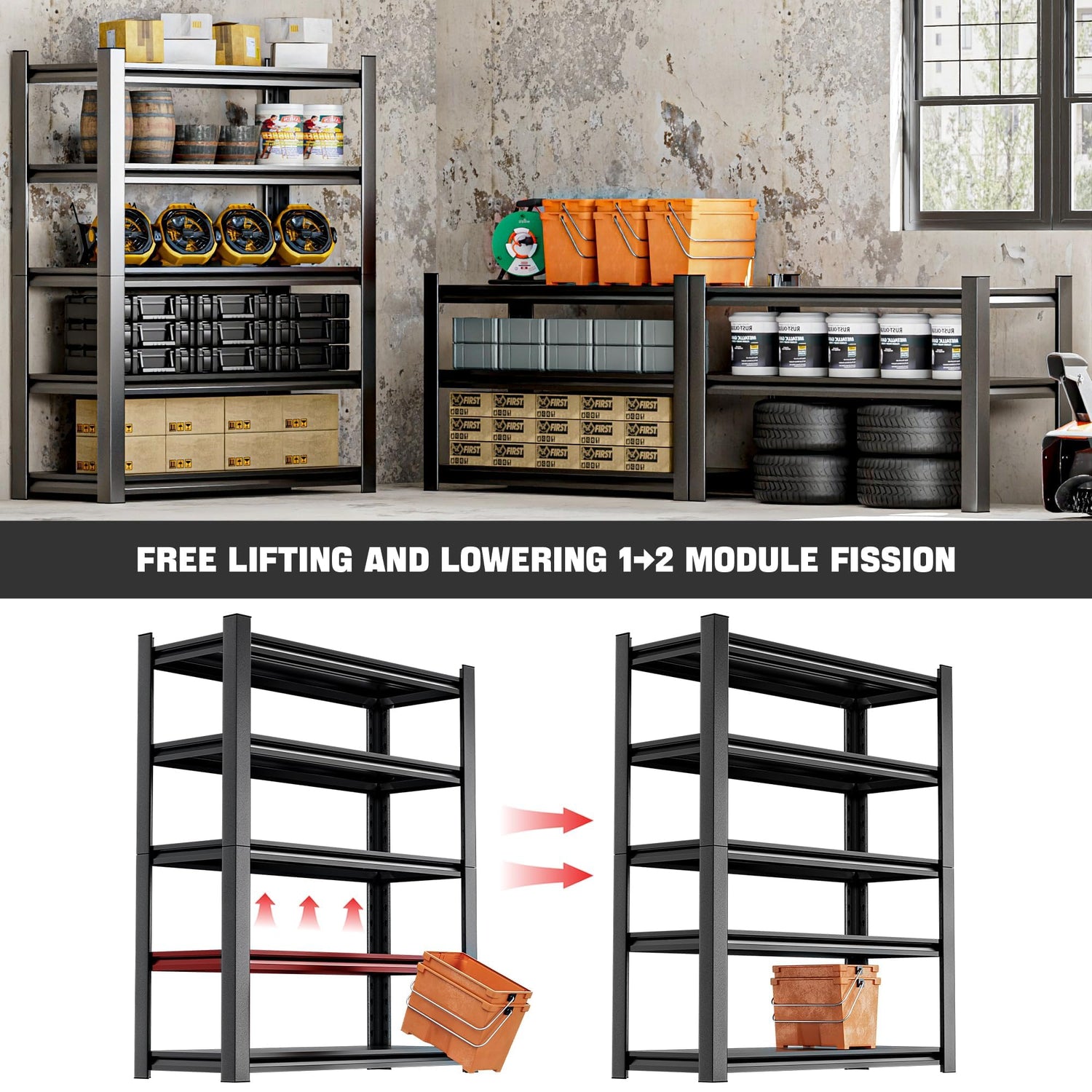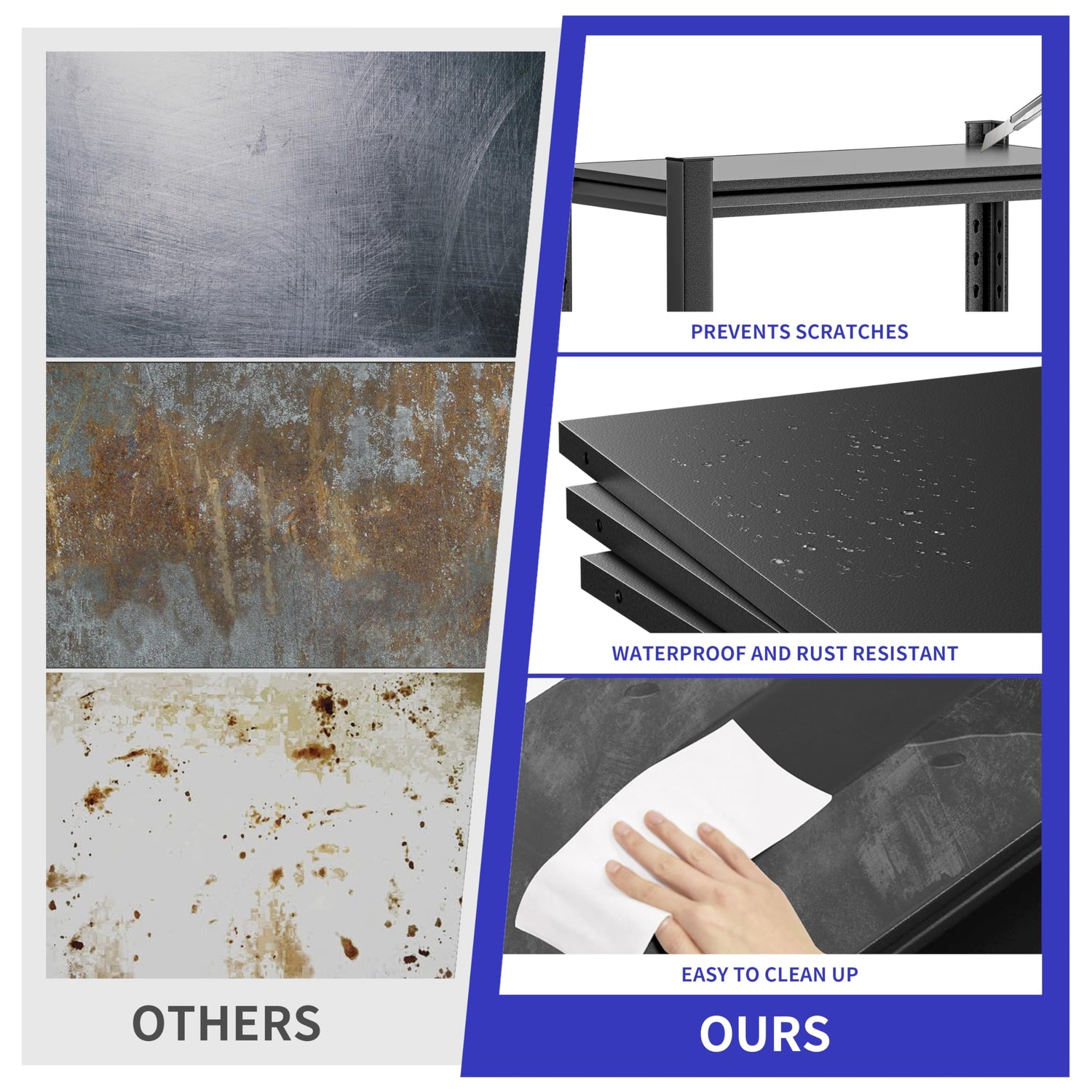 - Industrial Grade Garage Shelves:This 100% rust-resistant metal storage metal storage shelves features a triple defense system (baked-on paint coating + alloy reinforcement + fire-resistant core) and a sturdy carbon steel base that resists garage dirt,grease,and moisture.This shelf has strong load-bearing capacity,is shockproof and stable,making it the ideal storage shelves heavy duty for families with small children/pets,upgrade your storage game
