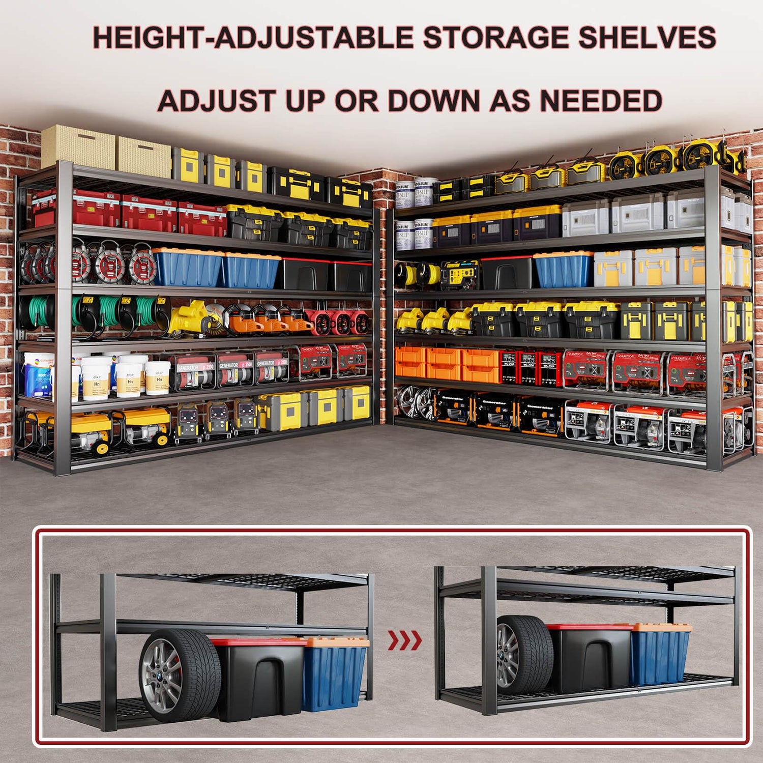 • 【Adjustable Heavy Duty Metal Shelves to Meet Different Needs】The height of each tier can be adjusted not only by moving the crossbar to meet the needs of different heights, but also the shelves can be assembled or disassembled into a variety of different metal shelves. The 84-inch tall 3900 lb. load-bearing garage shelves are not only strong, but they also give you more storage space.