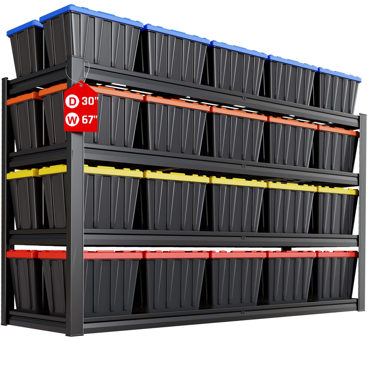 • 【Perfect for Multi-Scenario Storage‌】Ideal for ‌garage shelving‌, ‌workshop storage‌, or ‌commercial shelving‌ needs, this 67-inch-wide unit effortlessly organizes automotive parts, power tools, bulk supplies, or seasonal gear. Its ‌double-layer wire decks‌ and ‌adjustable 4-tier design‌ adapt to garages, warehouses, basement or shop shelves, while the ‌750 lbs/shelf capacity‌ and wobble-free structure ensure safe, space-saving storage for heavy or oversized items.