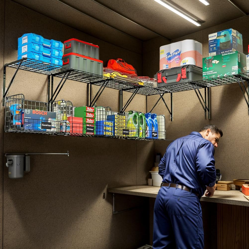 • These garage storage shelves come with clear, detailed instructions and all necessary parts, ensuring a hassle-free assembly process for your wire wall shelf. Once assembled, you can easily organize your heavy-duty garage items, resulting in a neater and cleaner space.