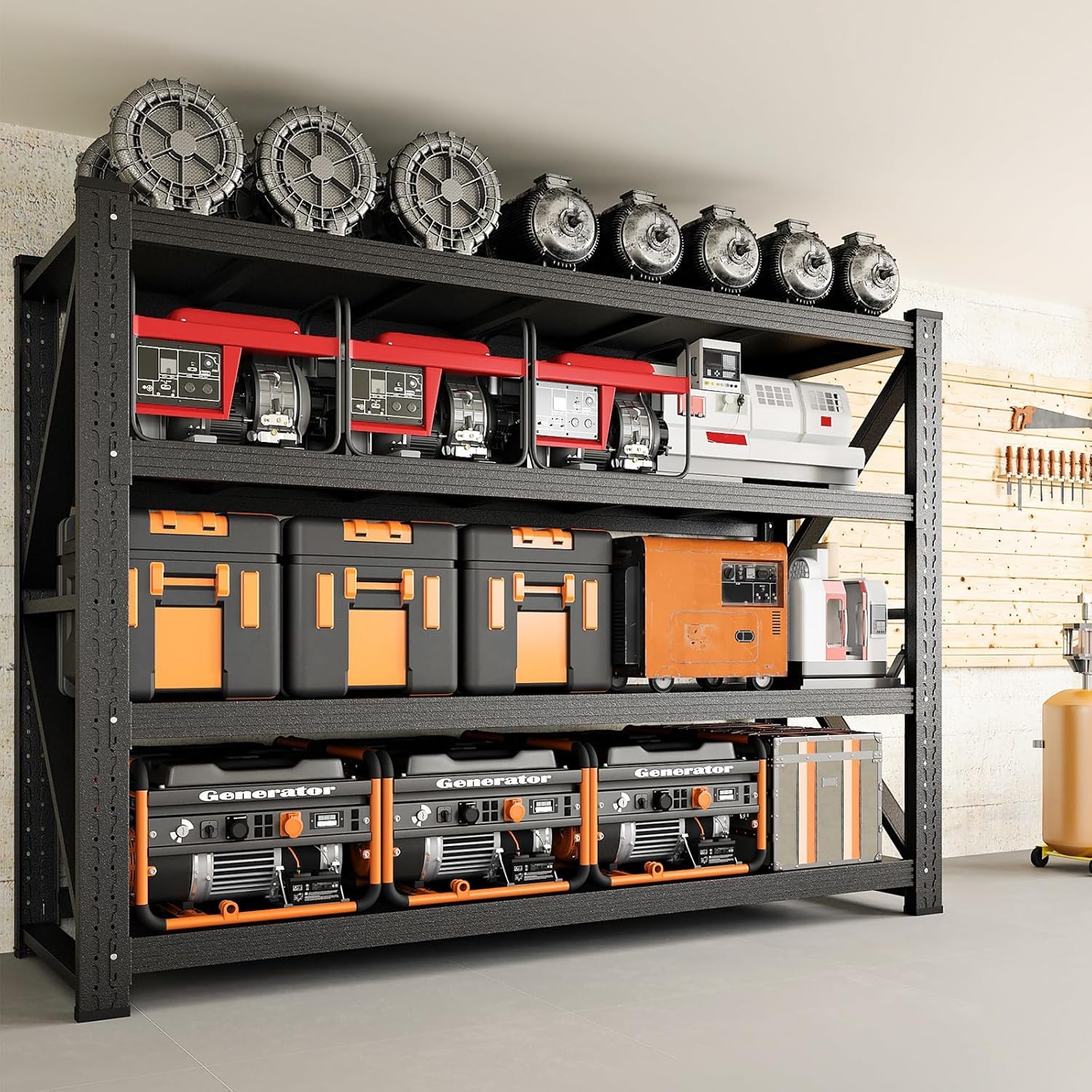 • 【HEAVY DUTY FOR REAL】Our super heavy-duty garage shelving featuring one-piece columns that are seamlessly constructed without any joints. This design eliminates weak points and ensures maximum stability, even under the heaviest loads. Each column is wider and thicker than standard models, providing a solid foundation that can handle up to 3000 lbs in total weight. Whether you’re storing heavy machinery, large containers, you can trust our garage shelving to keep your items safe and secure.