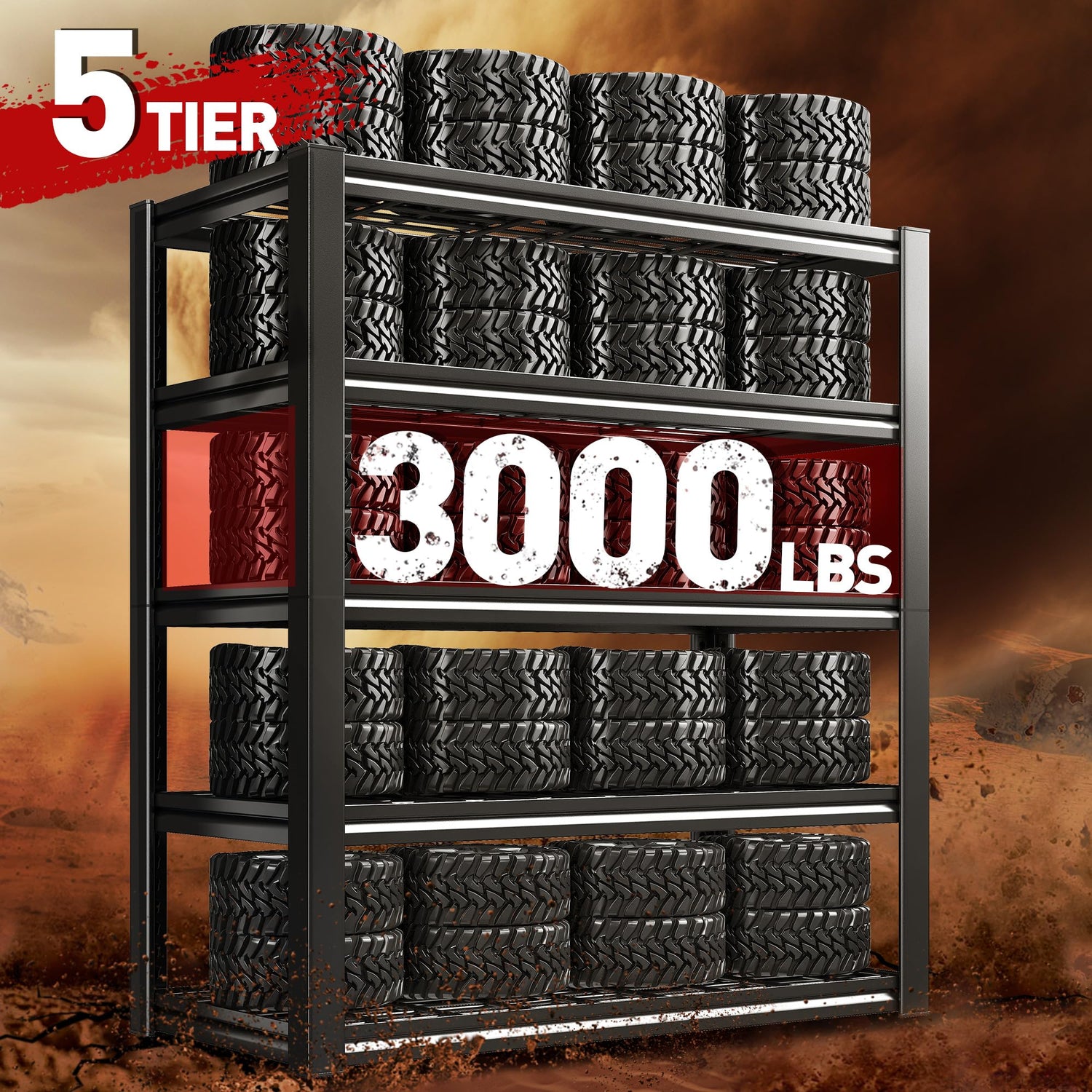 - 【3000LBS Capacity Sturdy & Storage Shelves】 Upgraded REIBII garage shelving heavy duty has thickened double metal legs.Shelving is made of high-quality metal, instead of flimsy particle board, sturdy and stable than ordinary garage storage shelves. Each garage shelving capacity 600 lbs